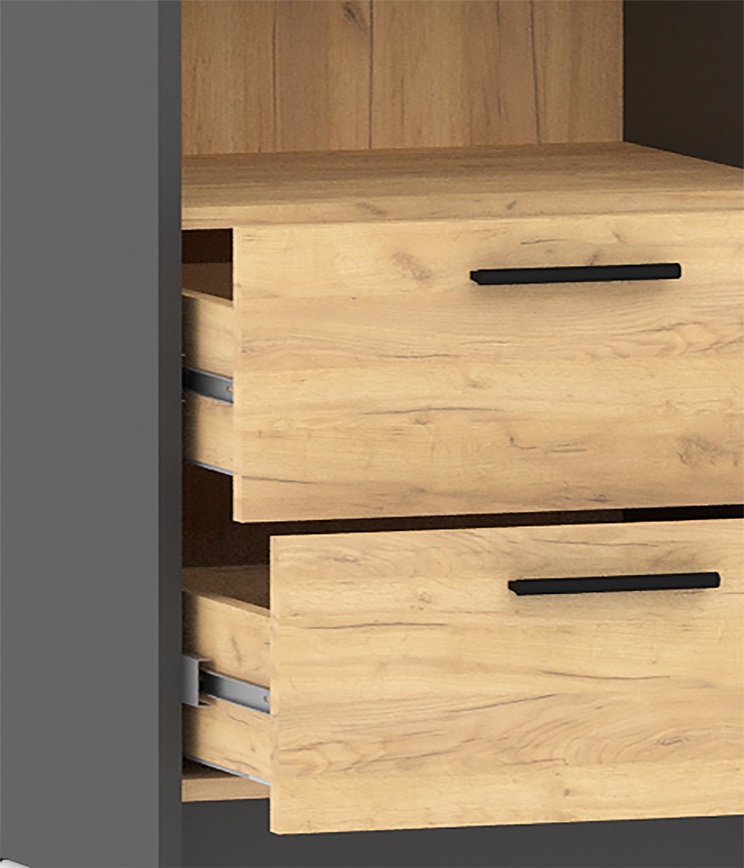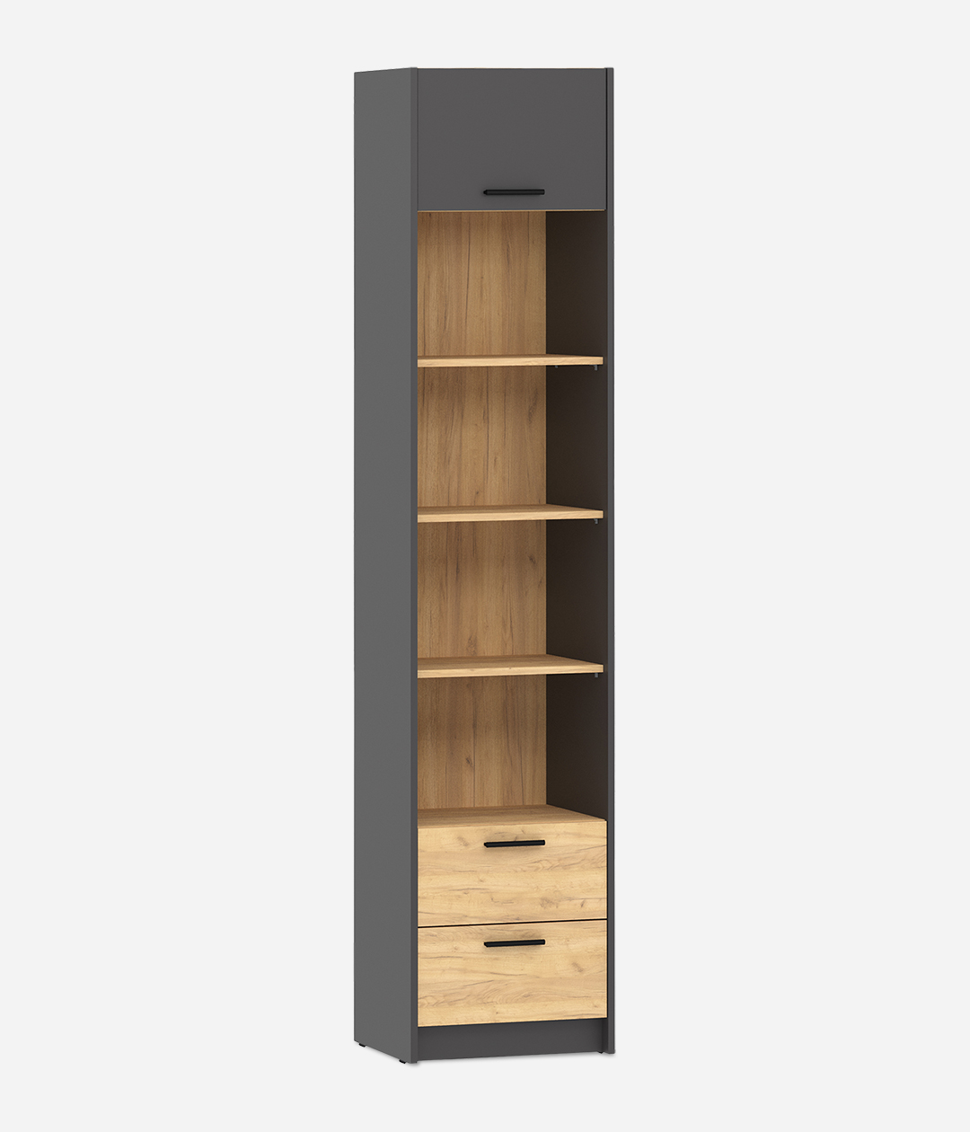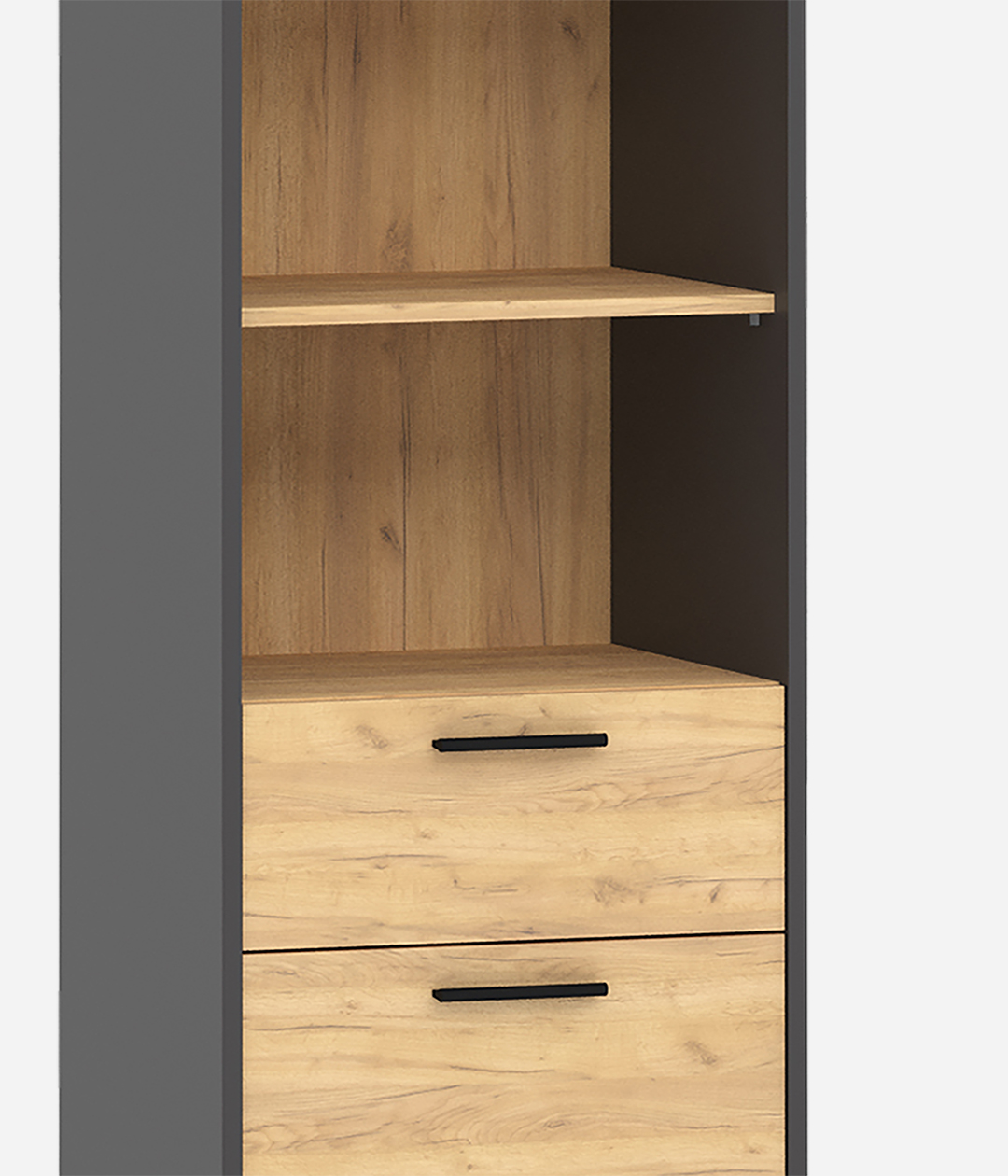 Шкаф-пенал для одежды с четырьмя полками и ящиками из новой коллекции Оттавия представлен в двух цветах на выбор – белый и антрацит. Шкаф отлично подойдет в гостиную для любого современного интерьера, как скандинавского, так и урбанистического.