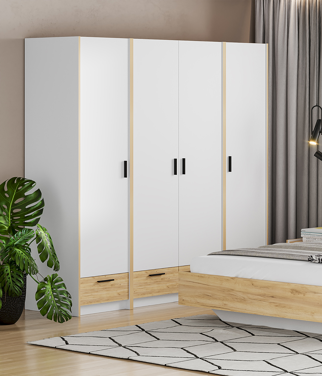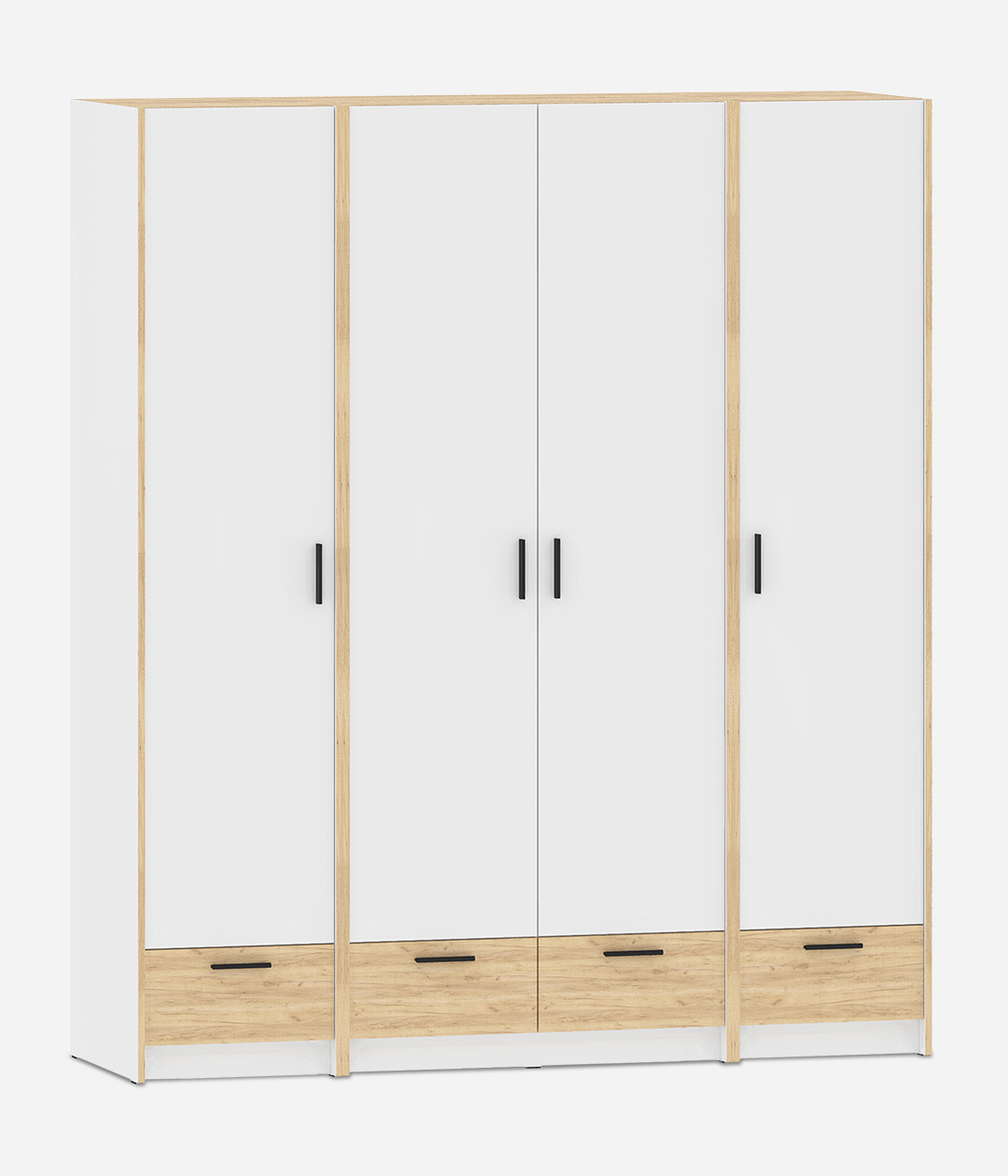 Четырехстворчатый шкаф со штангой, полками и четырьмя ящиками из новой коллекции Оттавия представлен в двух цветах на выбор – белый и антрацит. Шкаф отлично подойдет в гостиную для любого современного интерьера, как скандинавского, так и урбанистического.
