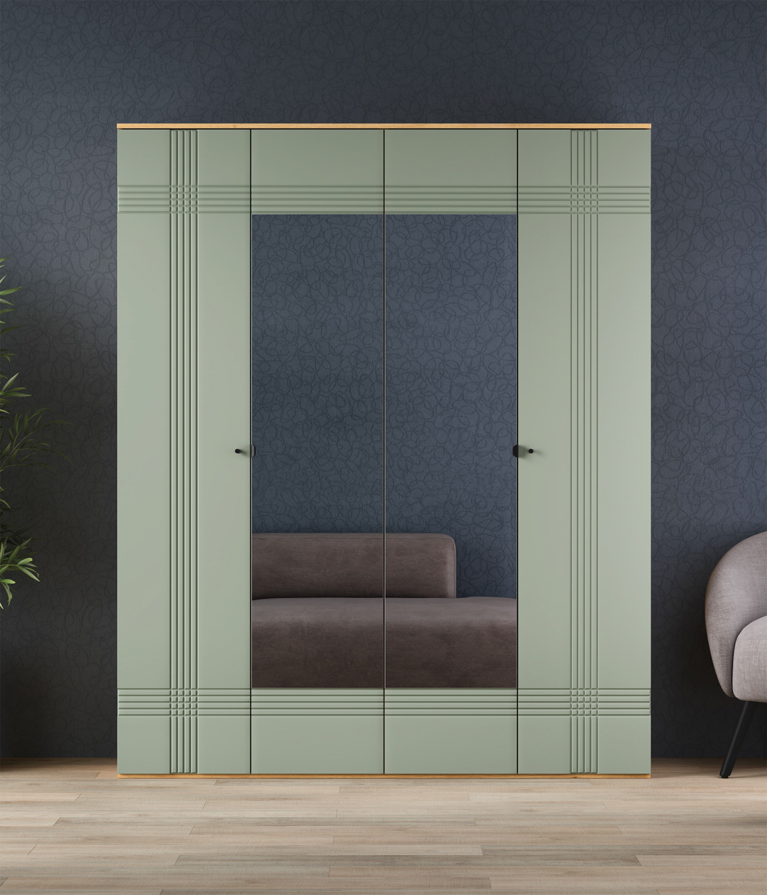 Шкаф 4-створчатый Саксония выполнен в современном стиле, сочетая в себе функциональность и эстетику. Установка шкафа напольная, что обеспечивает устойчивость и надежность конструкции. Полезная глубина шкафа составляет 57 см, что делает его вместительным и функциональным.
