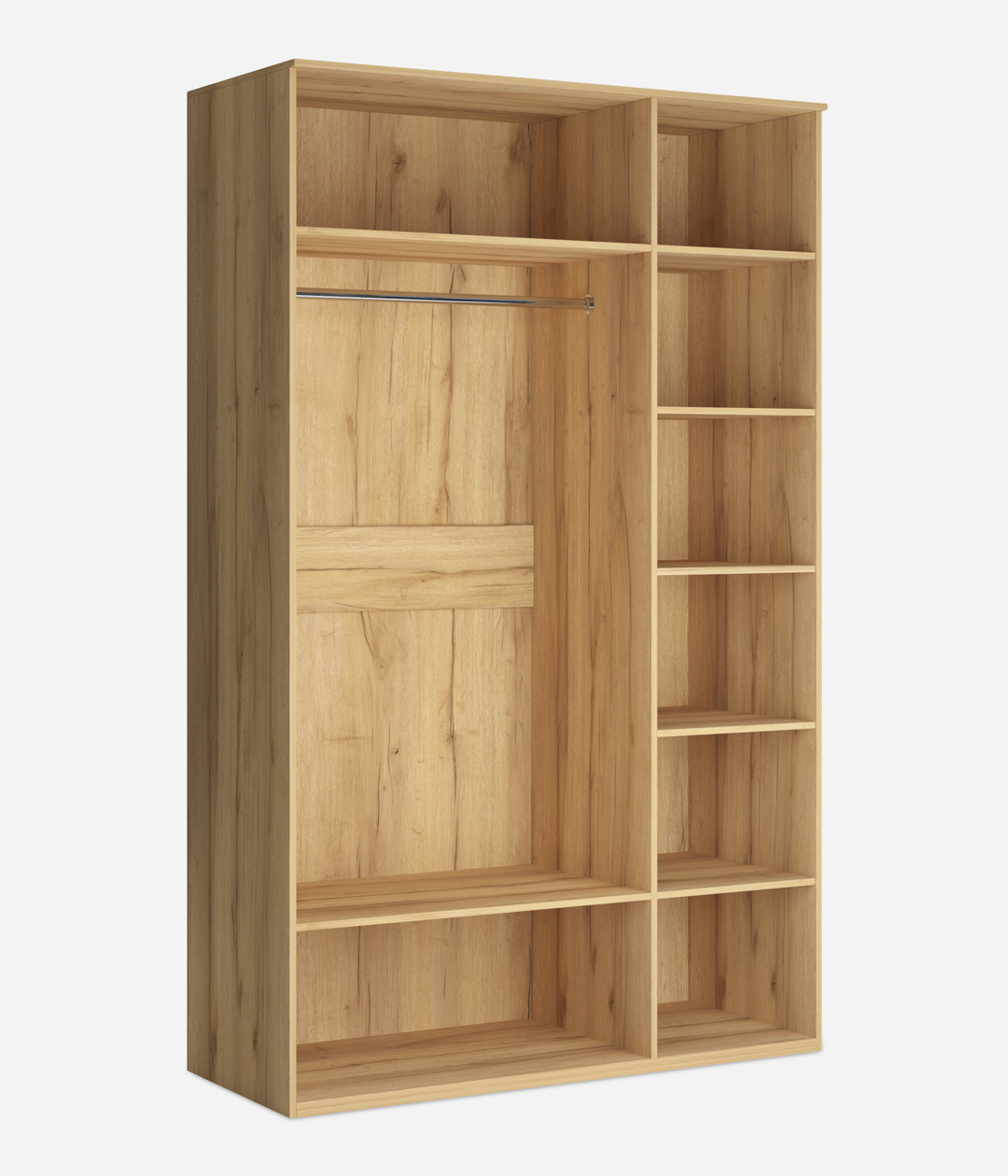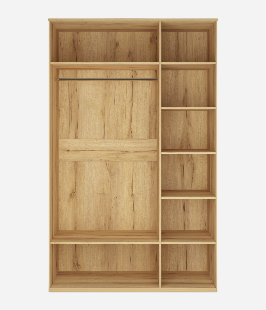 Распашной шкаф Вега Сапфир — идеальный баланс эстетики и комфорта. Фасады с элегантной фрезеровкой дополнены изящными акцентными ручками. Такой дизайн придает интерьеру более статусный вид. Качественная фурнитура обеспечивает плавное и бесшумное движение дверок.