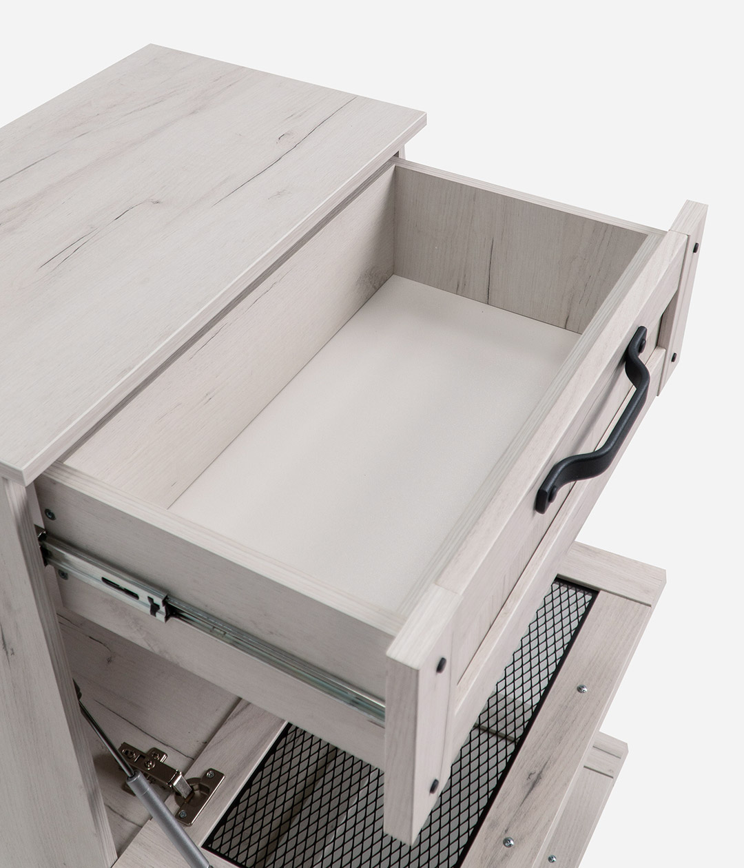 Тумба Сидней поможет с удобством хранить обувь, различные аксессуары и другие необходимые мелочи. Два откидных отделения дополнены выдвижным ящиком.