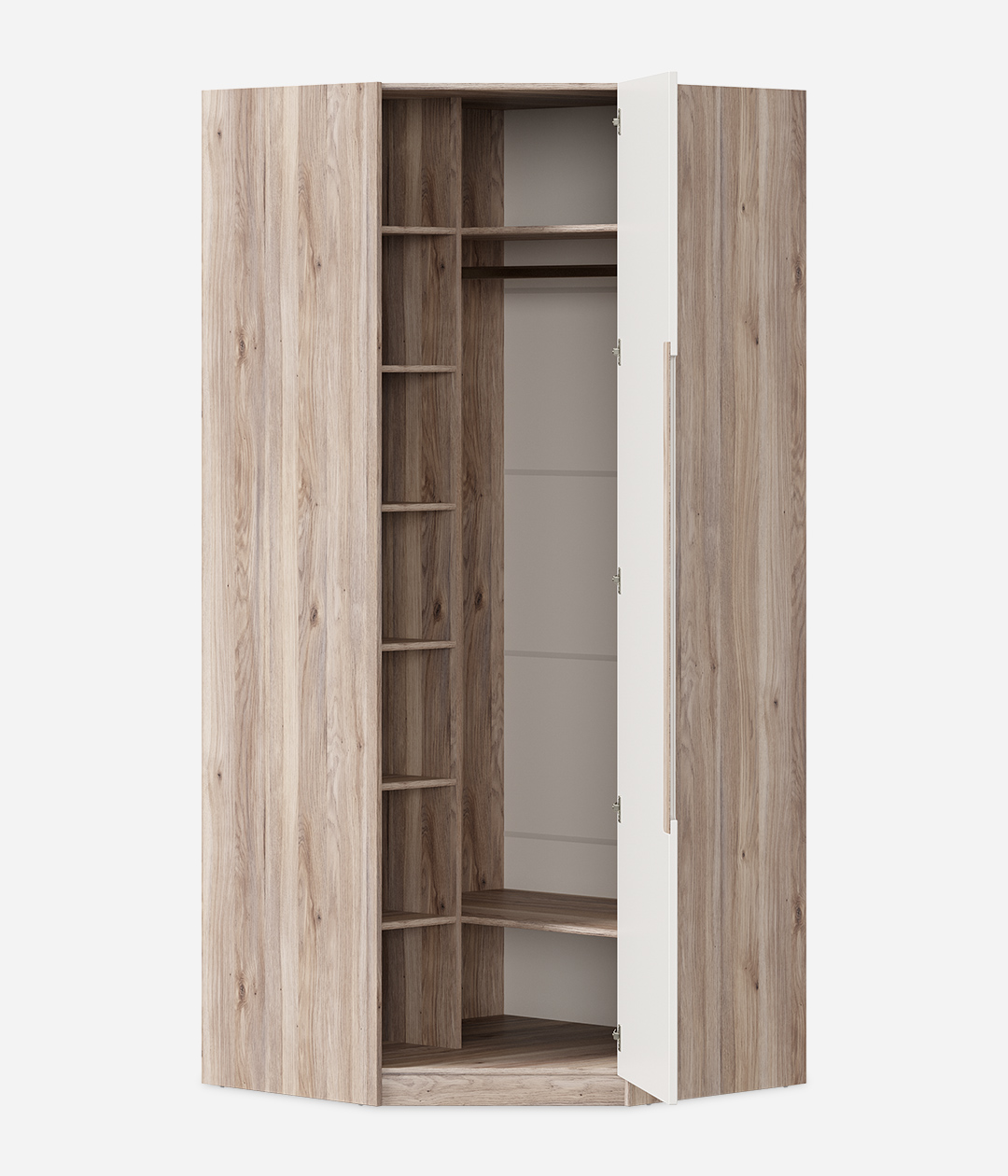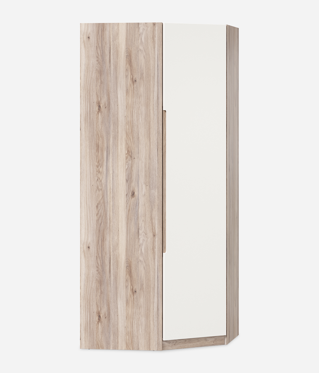Угловой шкаф Стефания – стильная и компактная модель, которая позволит сэкономить пространство в комнате и при этом добавить обстановке оригинальности. Благодаря необычной геометрии шкаф выглядит небольшим, но у него значительный объём.