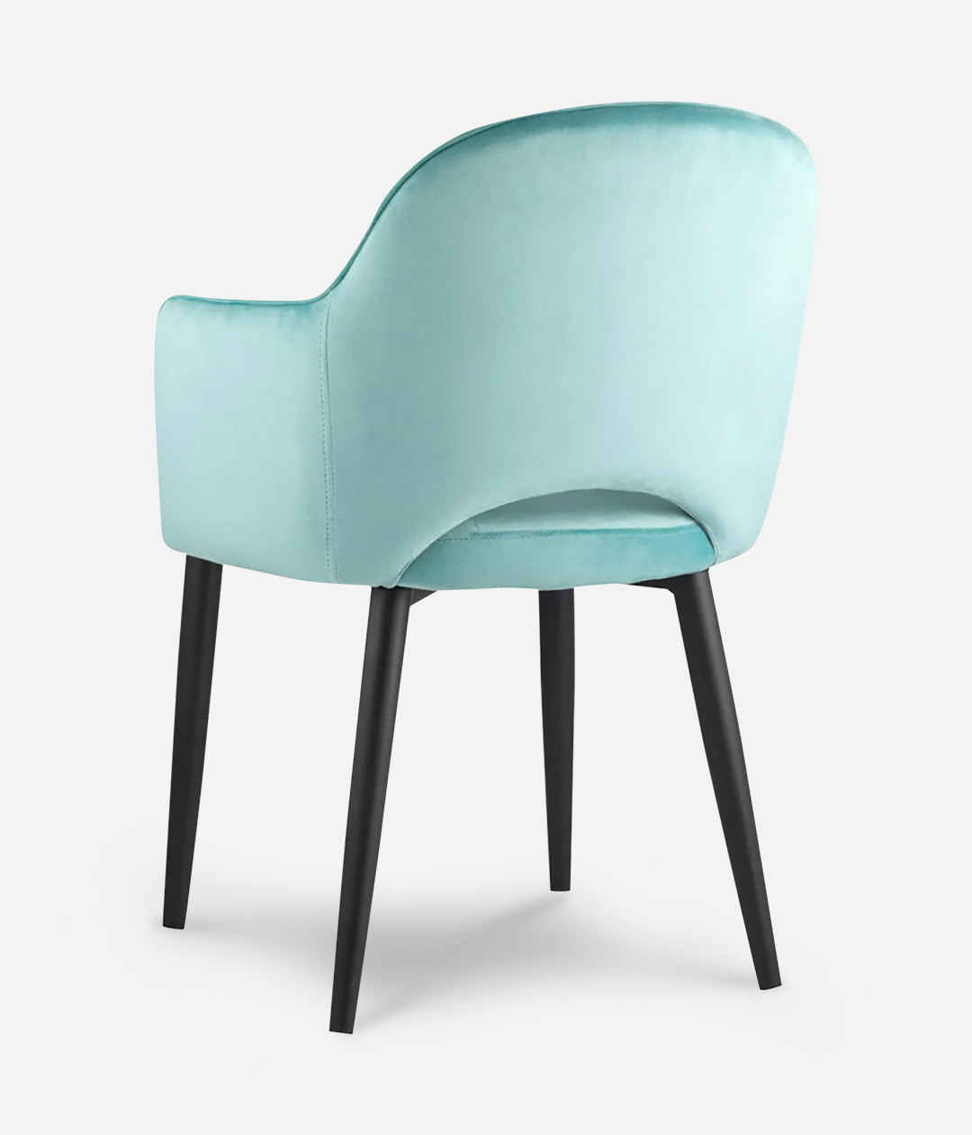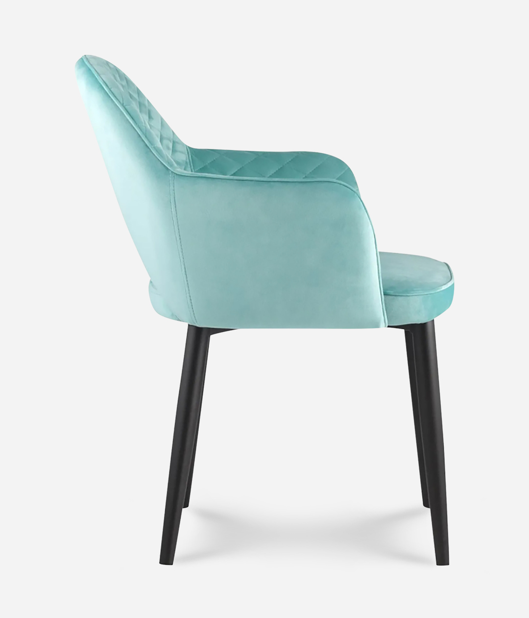 Интересное сочетание современного дизайна и вневременной мебельной классики. Обивка из мебельной велюровой ткани, мягкой, бархатистой и очень приятной на ощупь. Мебельная ткань велюр - очень практичная и устойчивая к истиранию. Ножки: металл, черного цвета.