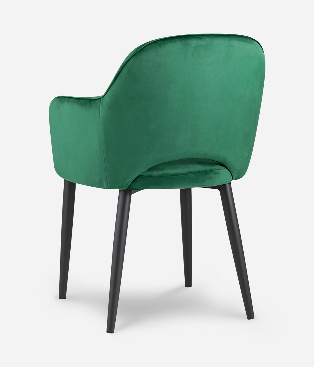 Интересное сочетание современного дизайна и вневременной мебельной классики. Обивка из мебельной велюровой ткани, мягкой, бархатистой и очень приятной на ощупь. Мебельная ткань велюр - очень практичная и устойчивая к истиранию. Ножки: металл, черного цвета.