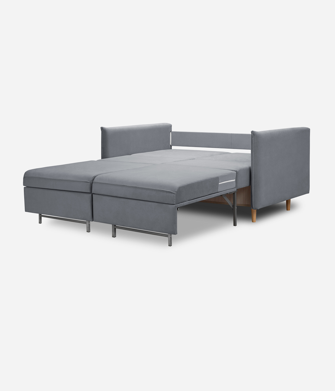 Диван раскладывается секционно. Выдвинув одну сторону секции, диван можно сделать угловым.