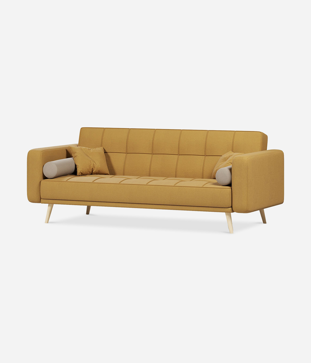 Диван-кровать «Алавус» с декоративными подушками в комплекте идеально подойдет для гостиной, спальни, детской или подростковой комнаты. Лаконичная современная модель на высоких ножках будет гармонировать со скандинавским интерьером или обстановкой в стиле минимализм.