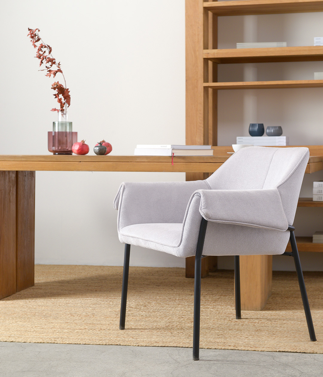 Стул Aline с обивкой из фактурного шенилла выглядит уютно и в то же время благородно. Материал приятный на ощупь и простой в уходе.