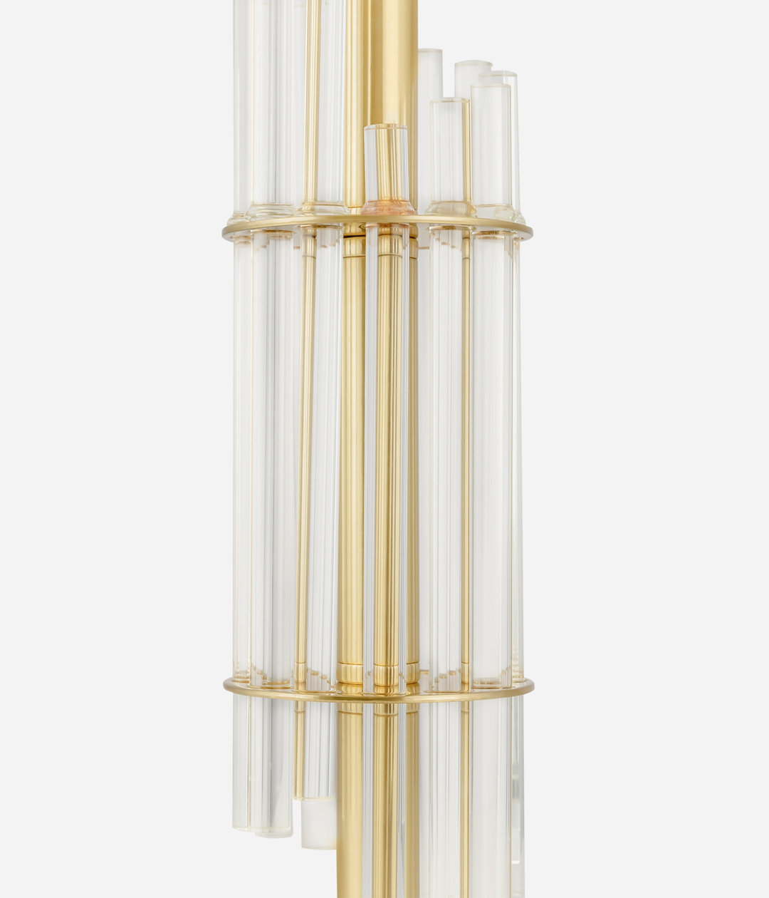 Грация классики и современные формы — популярный тандем, который активно используется в светодизайне. Модель Alloro удивляет асимметричным стеклянным декором, украшающим центральную ось светильника. Металлическая арматура отличается сдержанностью и строгостью, равно как и геометрически выверенные рожки. О благородстве и изяществе классики напоминают широкие белые абажуры, выполненные из текстиля —они делают свет мягким и уютным.