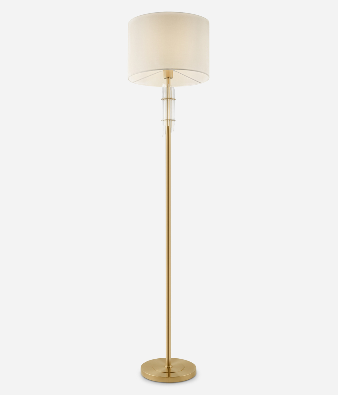 Грация классики и современные формы — популярный тандем, который активно используется в светодизайне. Модель Alloro удивляет асимметричным стеклянным декором, украшающим центральную ось светильника. Металлическая арматура отличается сдержанностью и строгостью, равно как и геометрически выверенные рожки. О благородстве и изяществе классики напоминают широкие белые абажуры, выполненные из текстиля —они делают свет мягким и уютным.