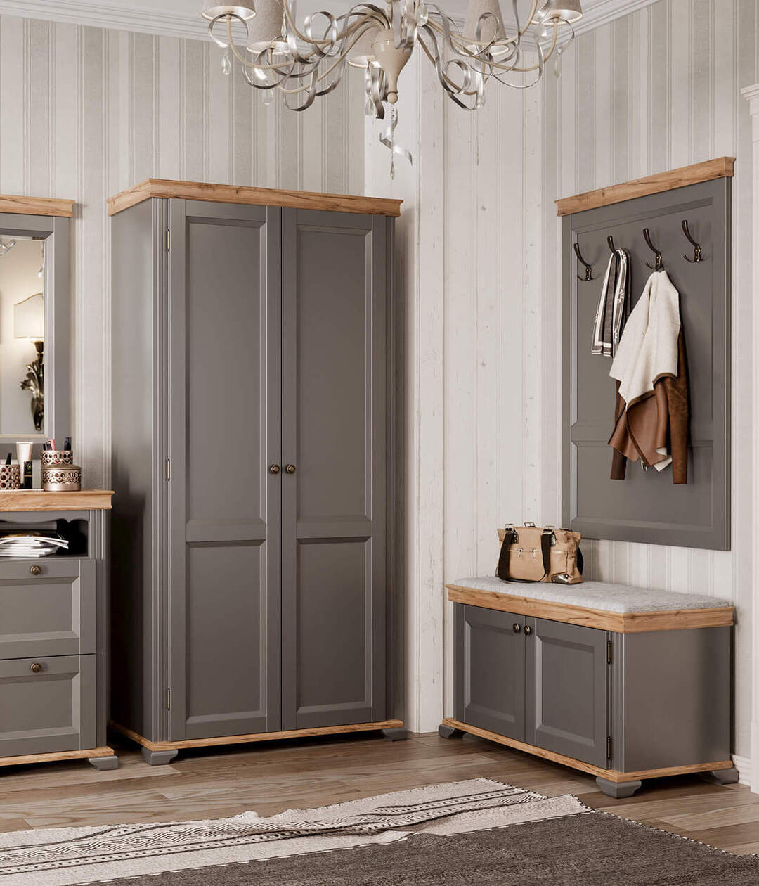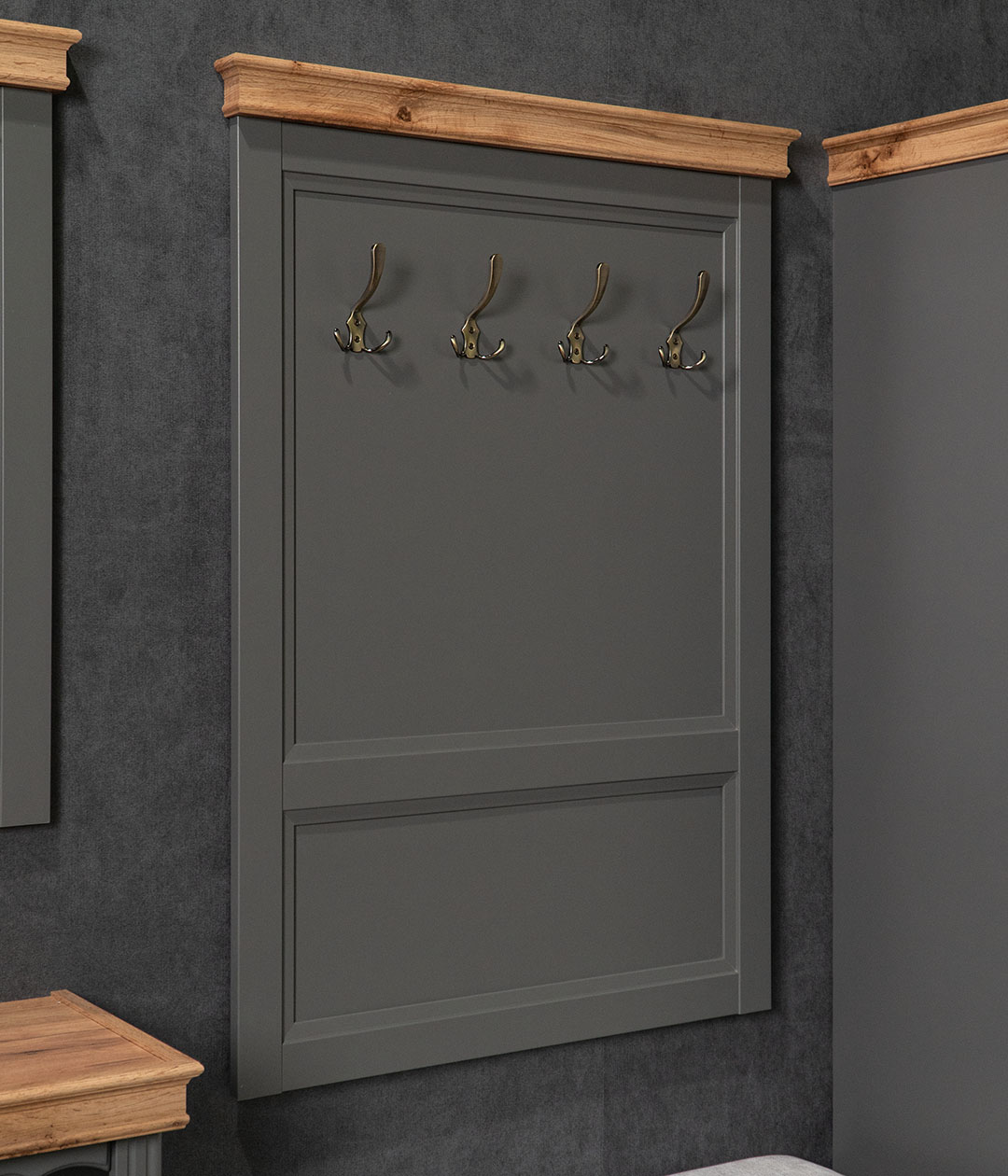 Настенная вешалка «Амели» прекрасно подойдет для современной прихожей и будет гармонично сочетаться с другими модулями коллекции. Металлические крючки позволят разместить верхнюю одежду или повесить небольшую сумку на длинном ремешке.