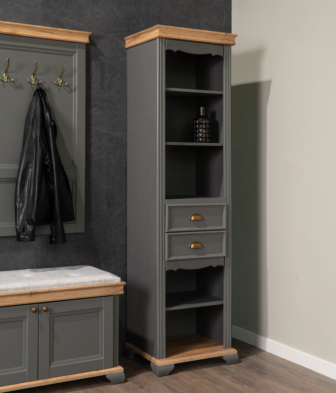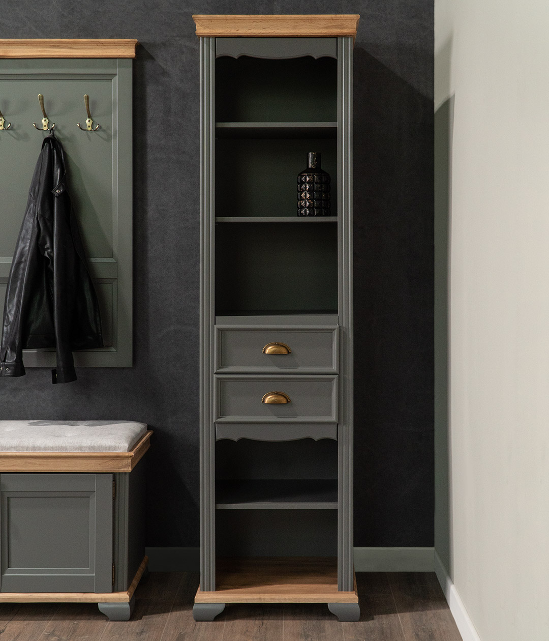Шкаф пенал Амели станет хорошим помощником в организации порядка в доме. Модель подойдёт для размещения в самых разных комнатах, будь то гостиная, прихожая или спальня.