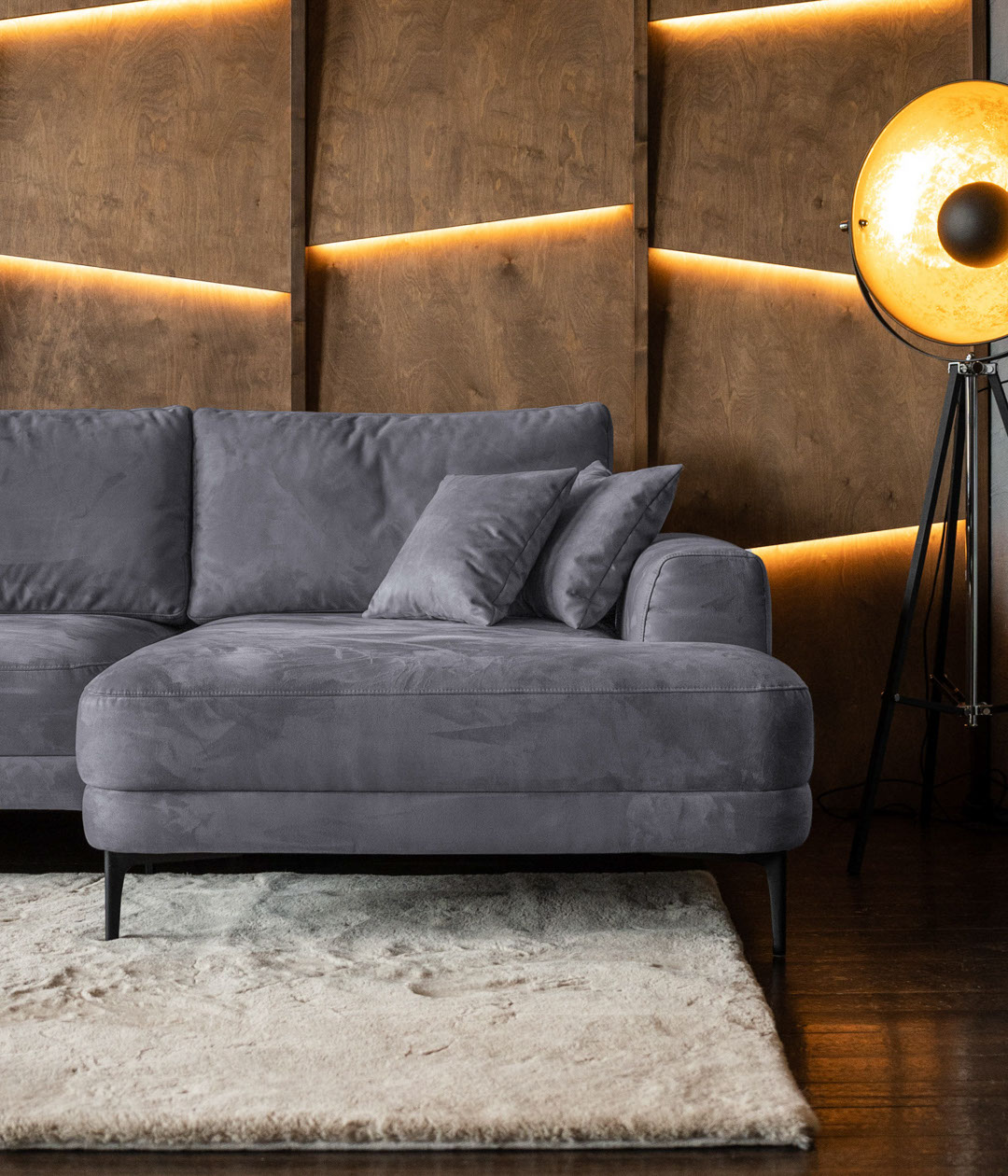 Угловой диван Арвада мини — это роскошь и элегантность, которые идеально дополнят ваш интерьер. Обивка из искусственного нубука не только выглядит стильно, но и дарит невероятные тактильные ощущения. Плавные линии и высокие ножки создают ощущение легкости и простора, подчеркивая минималистичный стиль. Современный наполнитель с эффектом памяти адаптируется к форме тела, обеспечивая полноценный отдых и комфорт. Диван Арвада мини — это не просто мебель, а настоящее произведение искусства, которое украсит ваш дом и подарит уютные вечера в кругу близких.