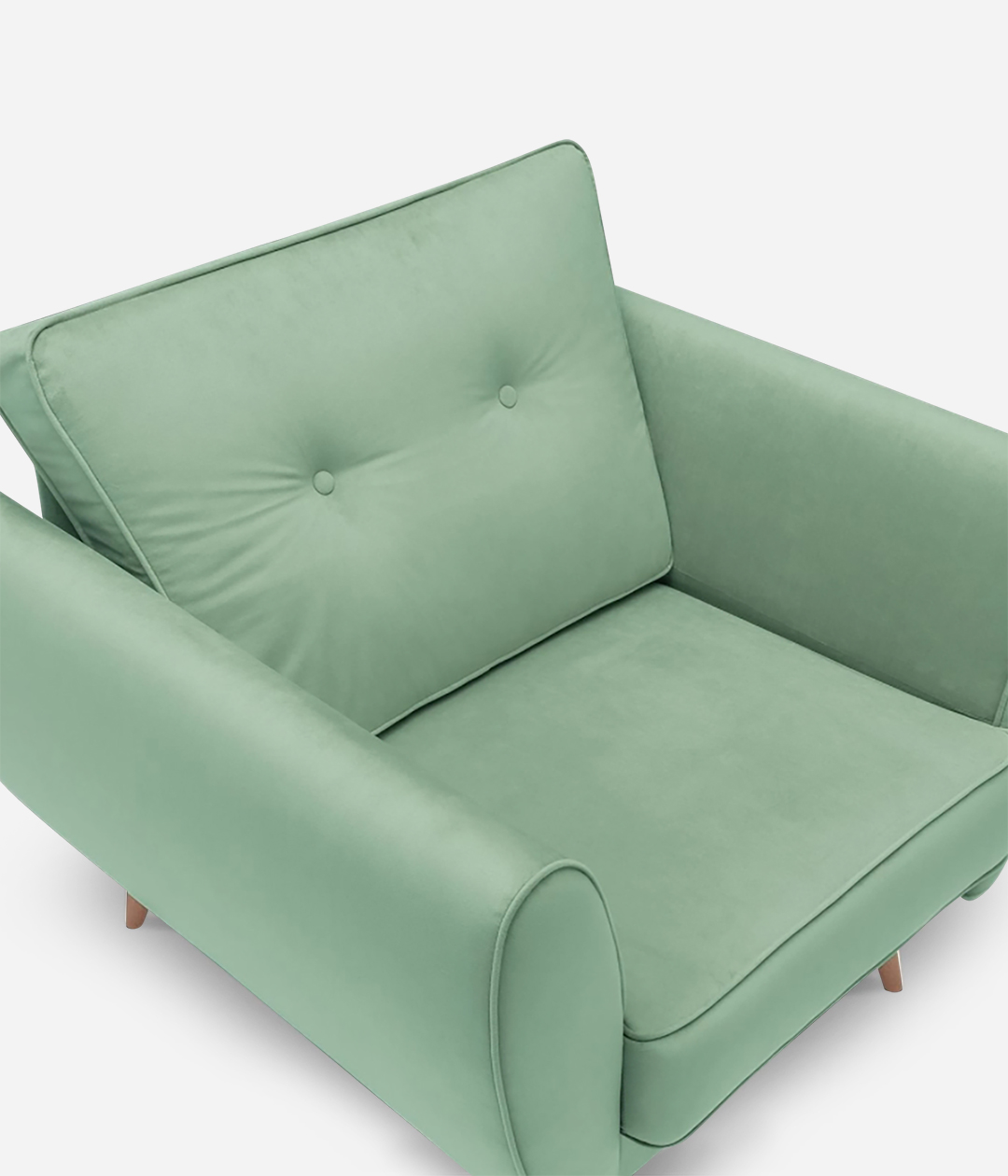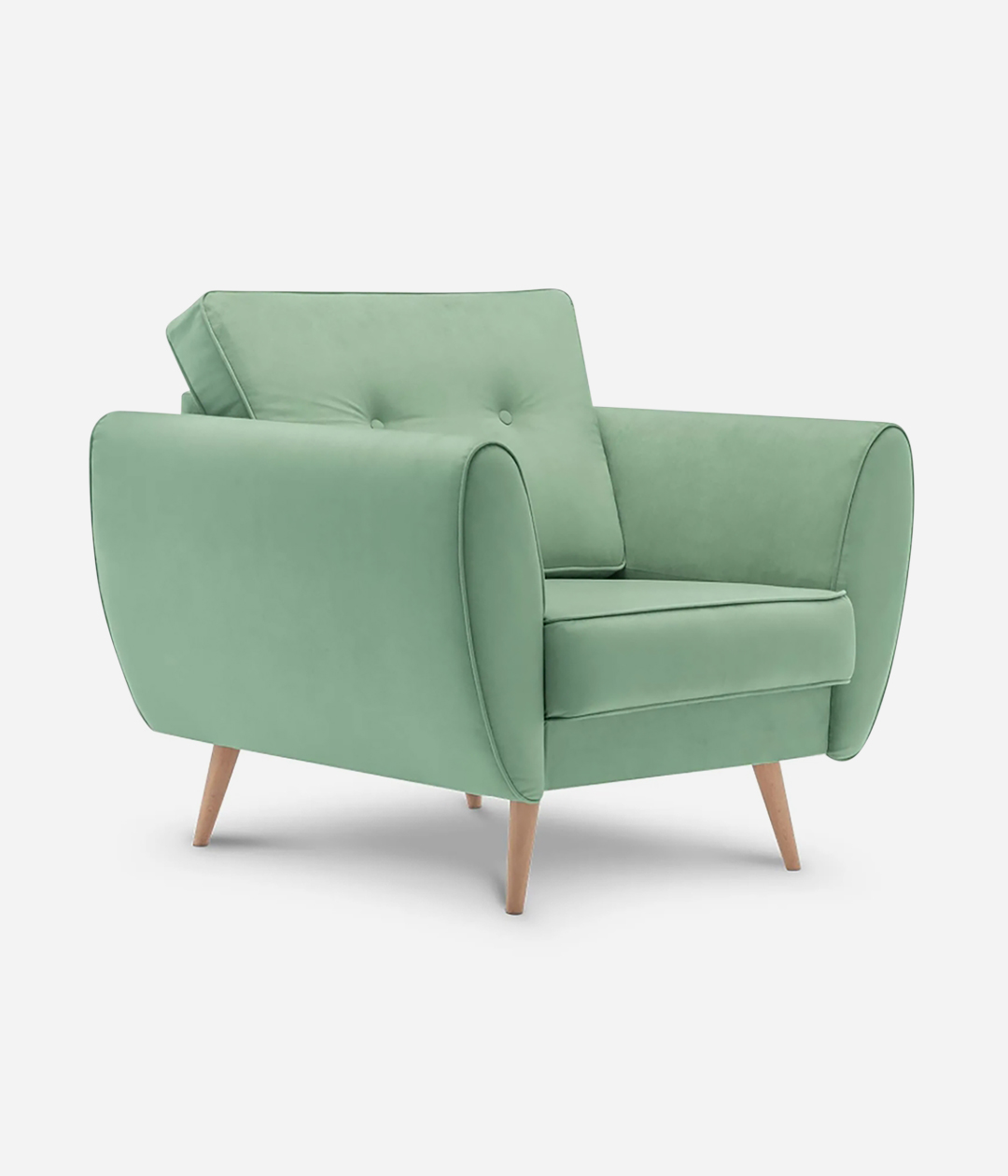 Кресло Бакай станет стильным акцентом вашего интерьера. Оригинальные подлокотники, расположенные по диагонали, придают изделию неповторимый вид, подчёркивая красоту природных материалов и легкость конструкции. Широкая палитра расцветок позволяет легко подобрать вариант под любой дизайн. Практичная обивка из велюра приятна на ощупь и удобна в уходе.