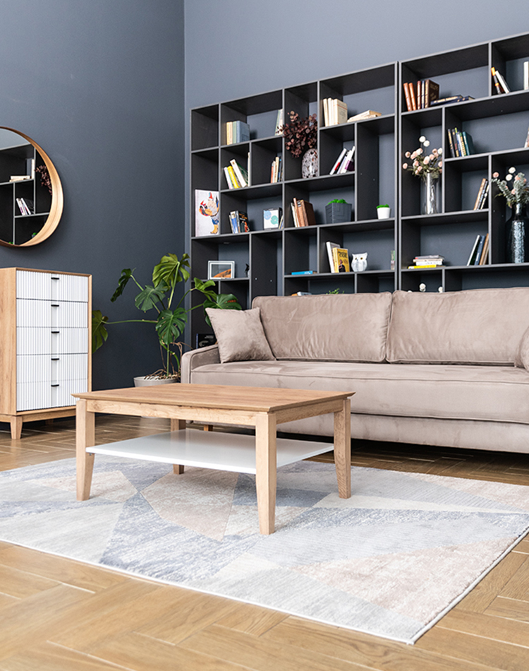 Украшением любой гостиной может стать журнальный столик Бари. Прямоугольная столешница на изящных ножках комфортной высотой 45см, с удобной полочкой под столешницей. Скандинавский стиль столика будет прекрасно сочетаться с