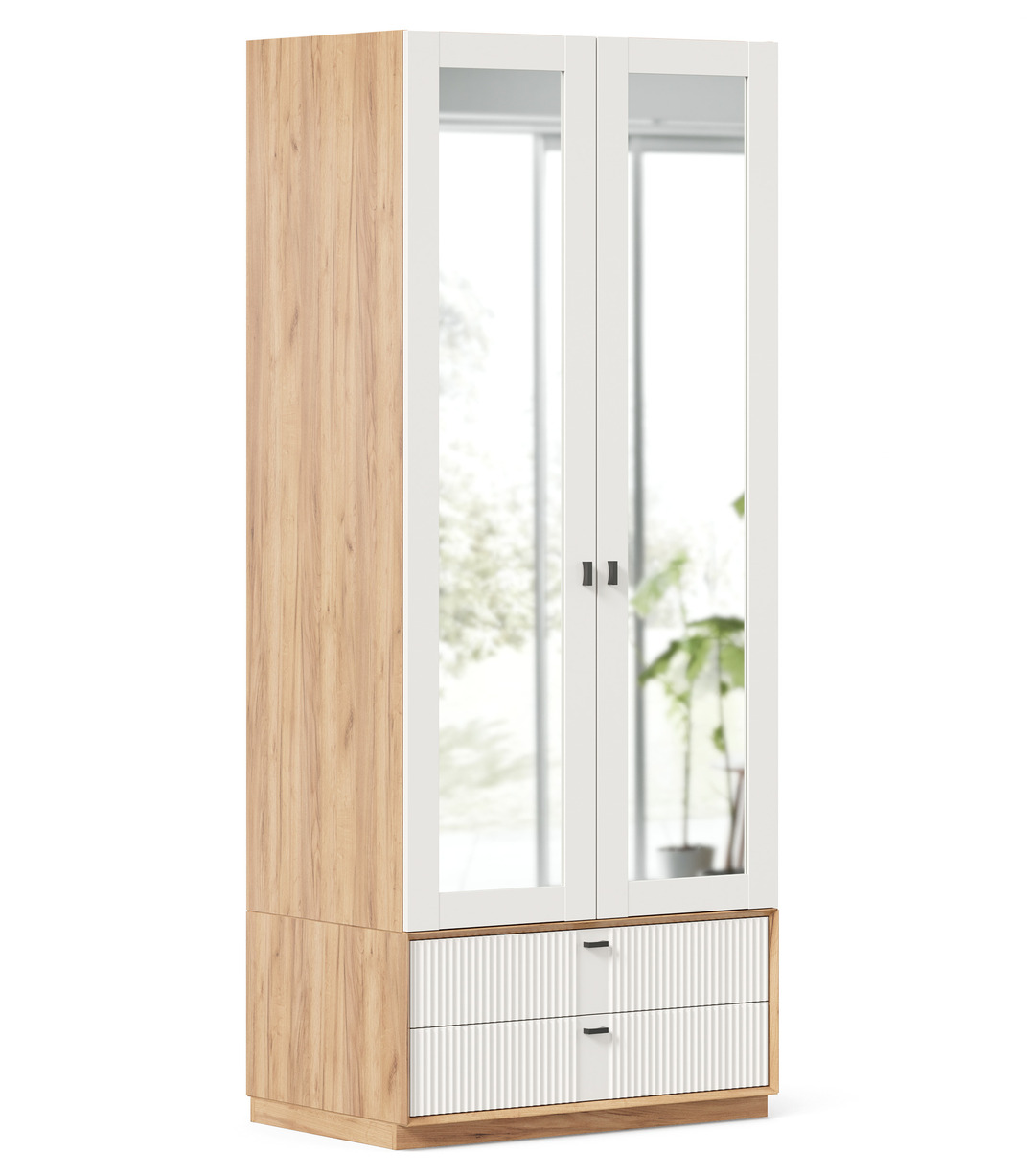 Бари двухстворчатый с зеркалом (Дуб Золотой/Белый)
