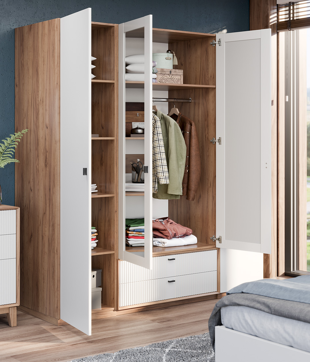В дизайне шкафа Бари нет ничего лишнего. Такая мебель привлекает внимание своей лаконичностью, позволяющей легко вписать модель в любые современные интерьеры.