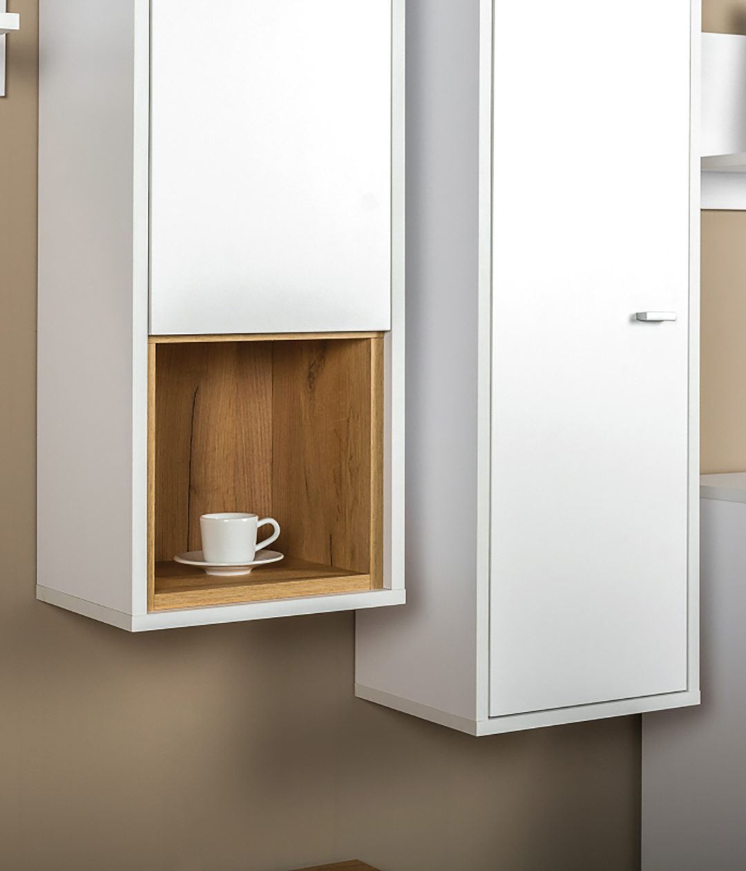 Навесной шкаф Бель — практичное решение для современного интерьера. Навесная конструкция сделает обстановку в комнате более лёгкой и уютной. Модель включает три закрытых отделения и открытую нишу.