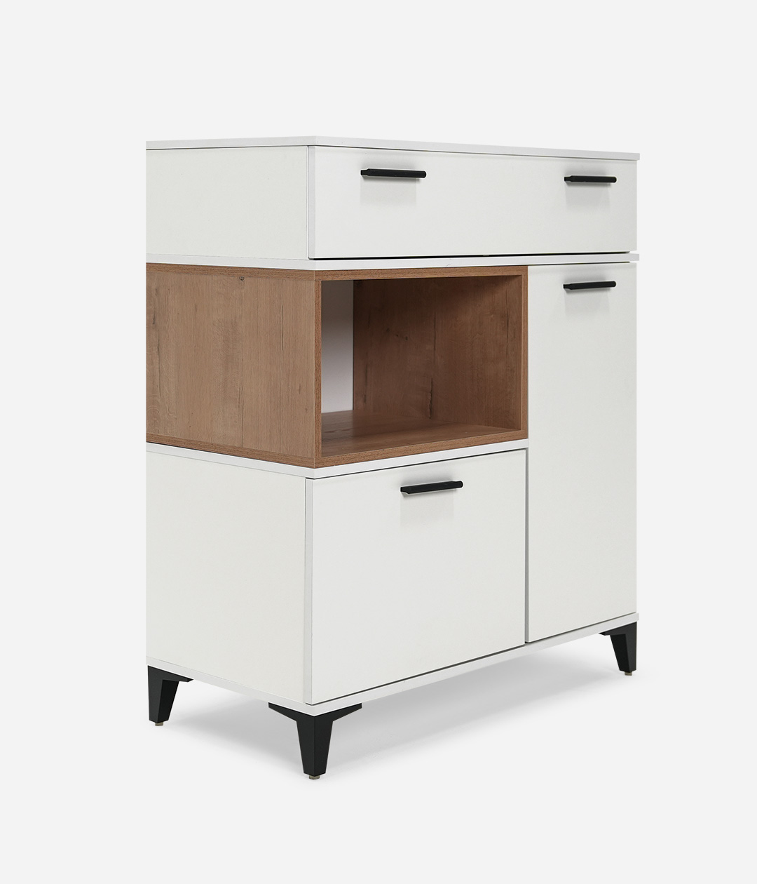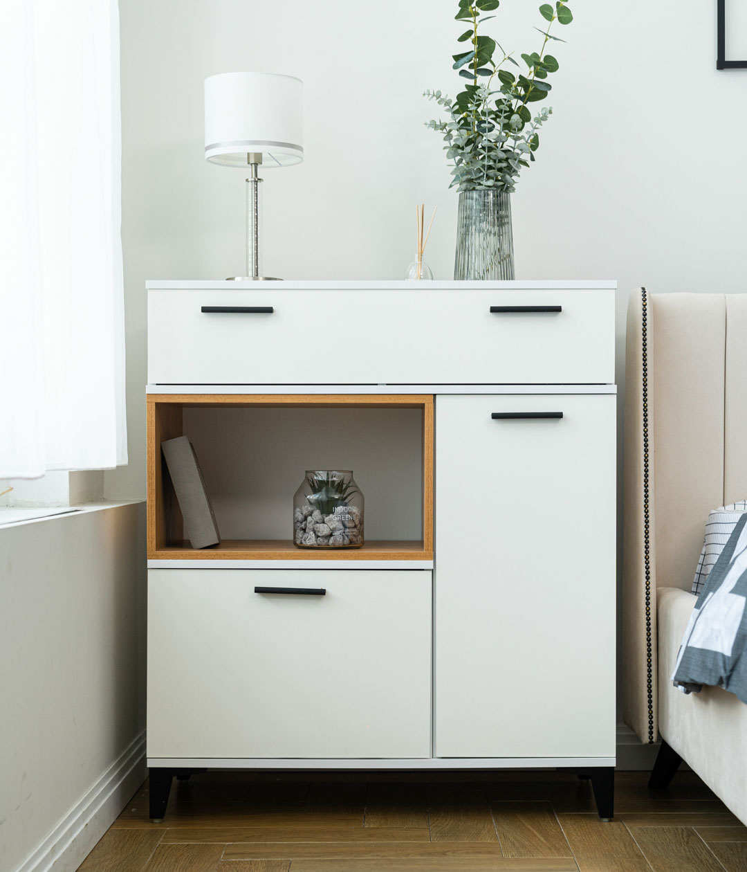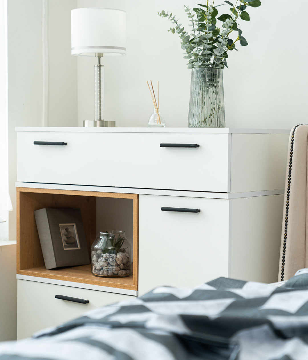 Удобная и функциональная тумба с выдвижным ящиком и двумя просторными нишами, за распашными дверями, - незаменимый элемент интерьера любой спальни и гостиной. Корпус и фасад выполнены в современном скандинавском стиле в самых актуальных текстурах и цветах: Белый и Ясень Анкор тёмный. Модели с ярко выраженными элементами, в виде контрастных вставок и ручек, подойдут для светлых и тёмных интерьеров.