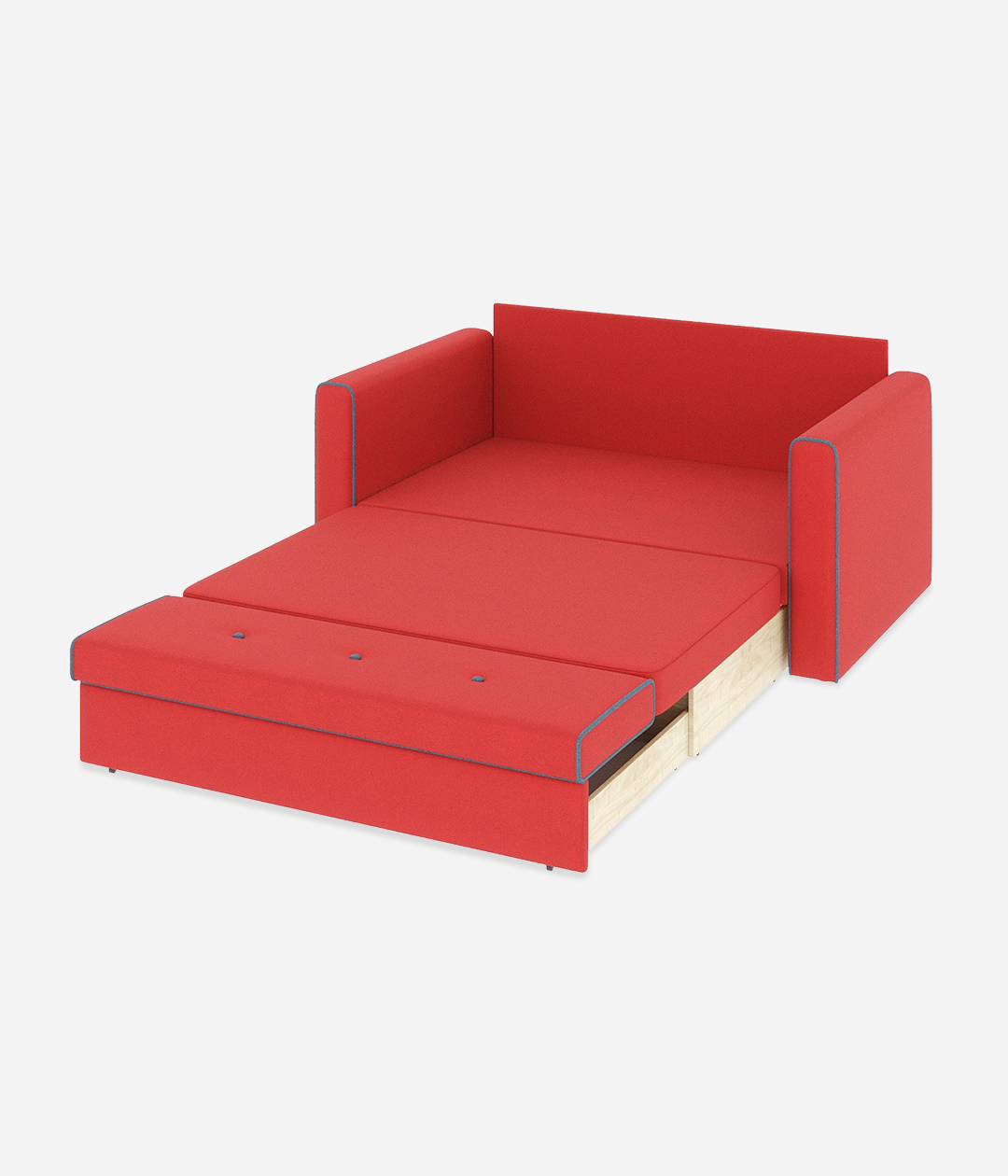 В сложенном виде занимает очень маленькую площадь, в разложенном — образует просторное и удобное спальное место.