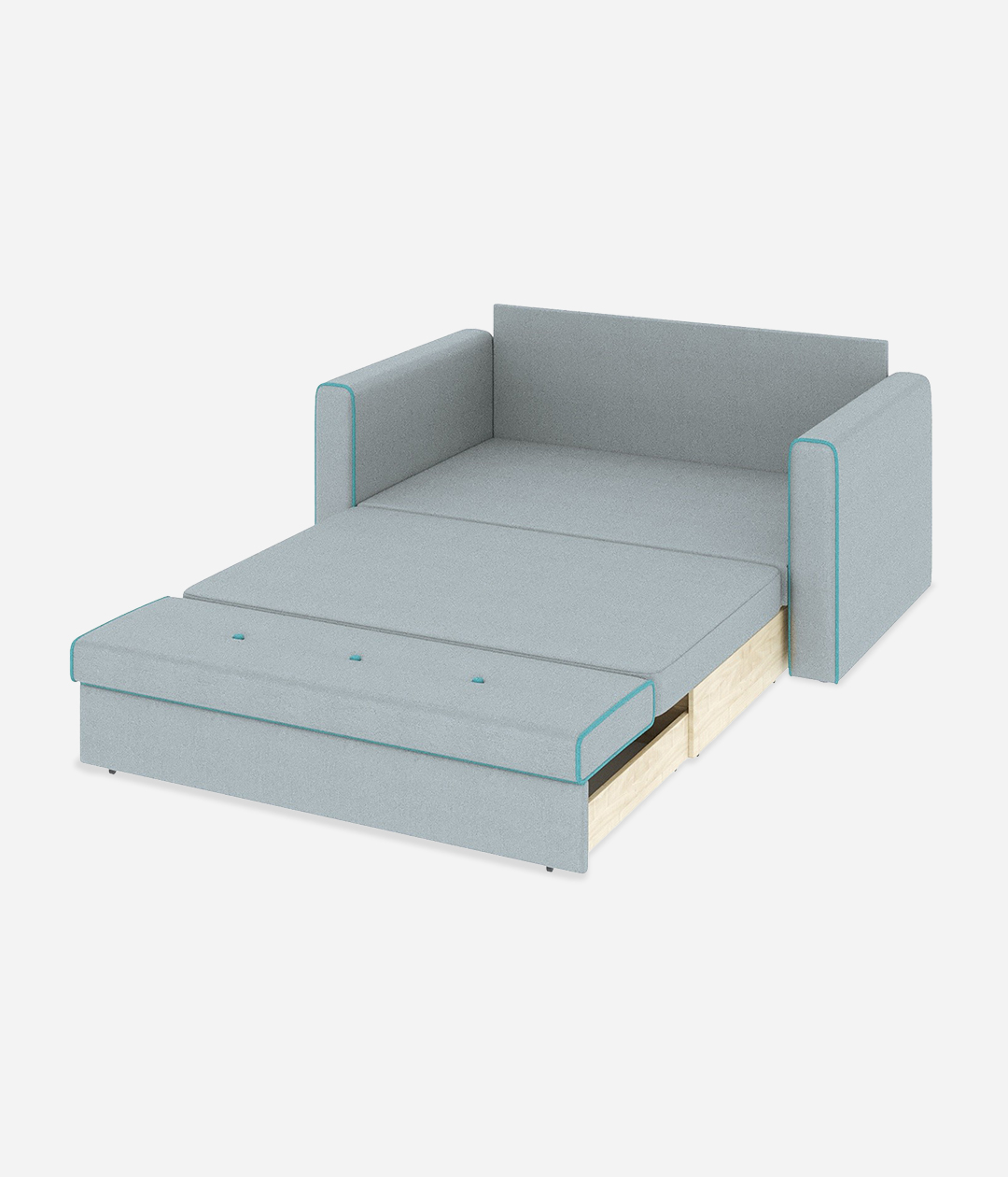 Идеальный пример эргономичной мебели. Небольшой по габаритам диван легко трансформируется в полноценное спальное место для двоих.