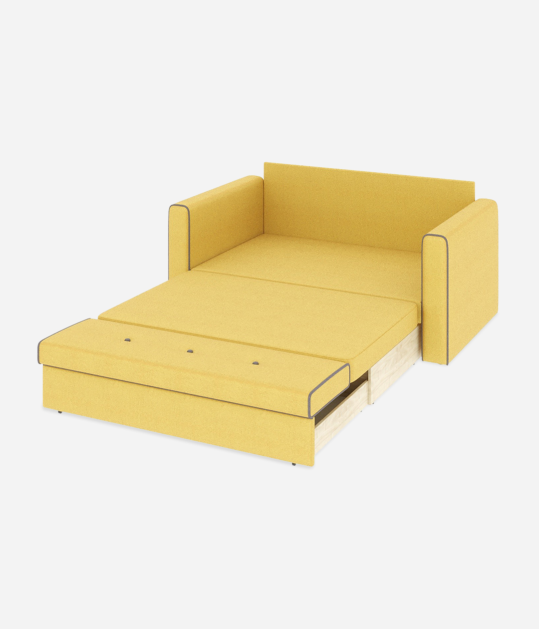 В сложенном виде занимает очень маленькую площадь, в разложенном — образует просторное и удобное спальное место.