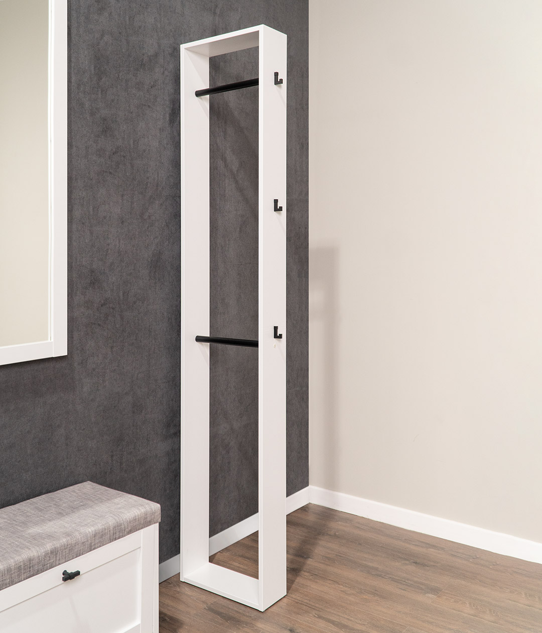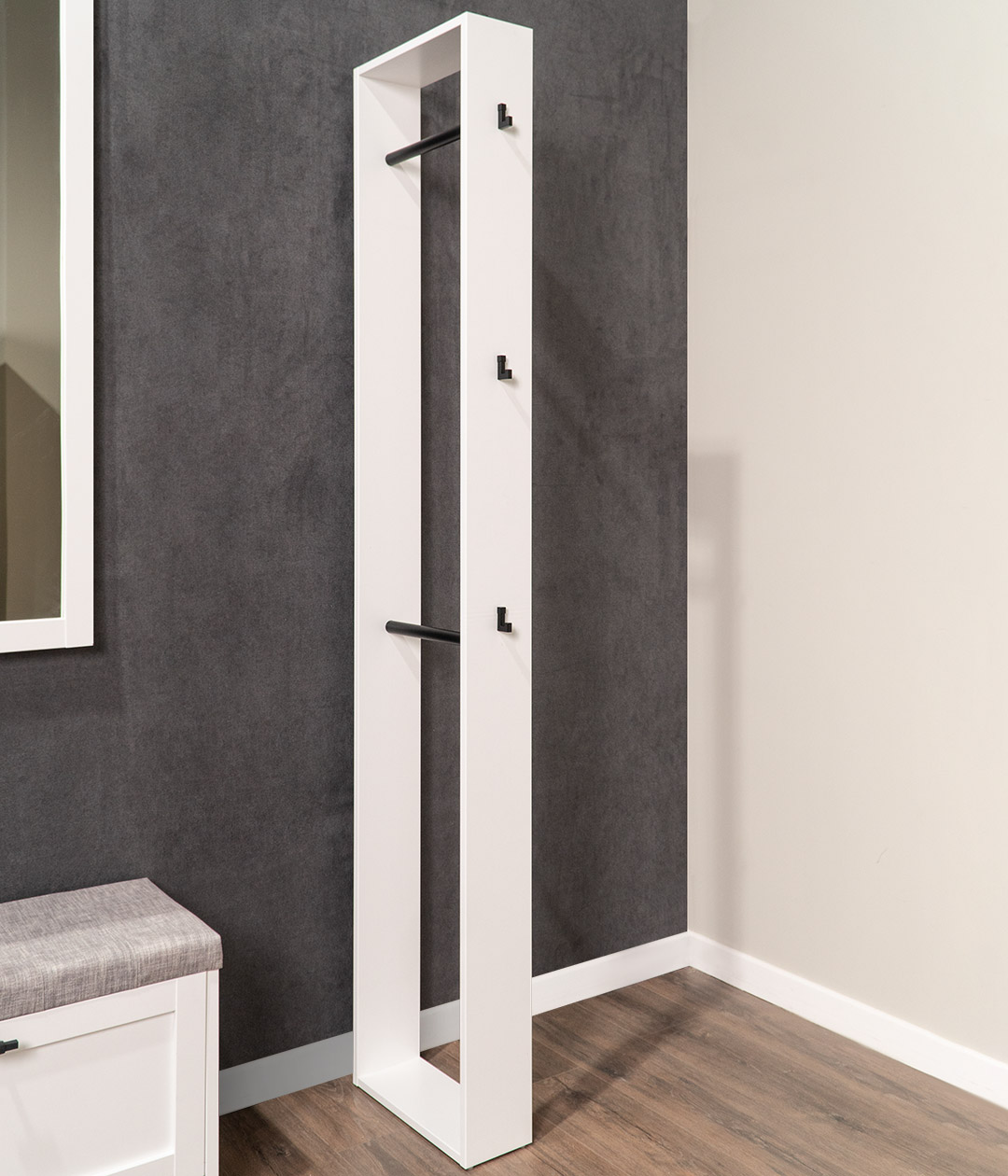 Вешалка напольная Бланко — актуальное интерьерное решение для вашей прихожей. Подойдёт как для небольших помещений, так и для просторных лофтов.