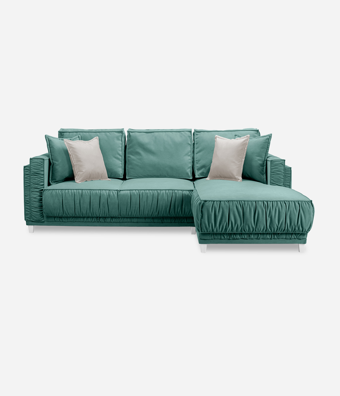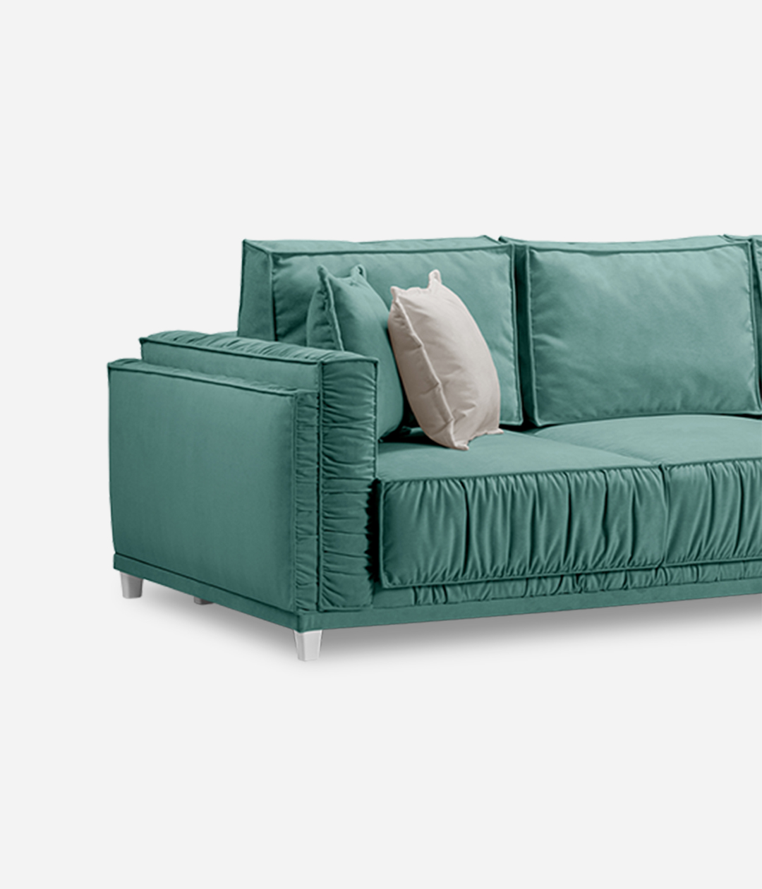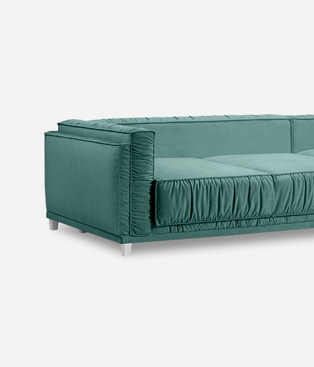 Диван Бонхем сочетает строгие геометрические формы с легкой драпировкой на царге и подлокотниках, что придает ему мягкость и уют. Высокие ножки подчеркивают современный стиль, превращая диван в центральный элемент интерьера. Это идеальное решение для тех, кто ценит комфорт и эстетику в одном.