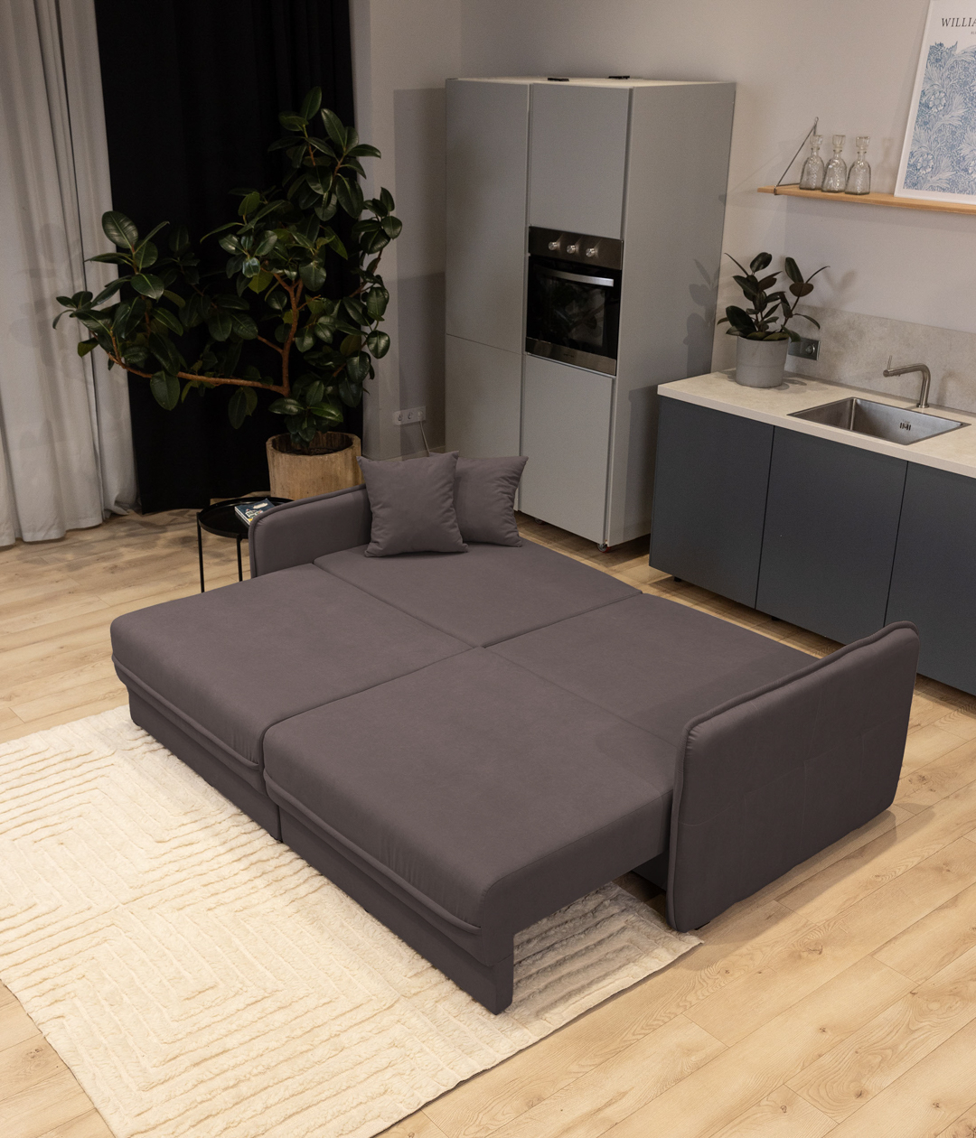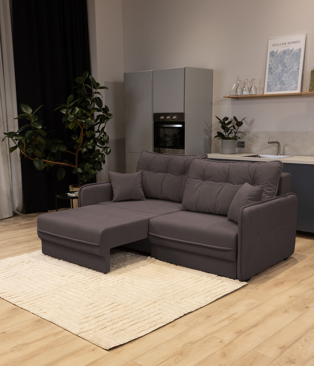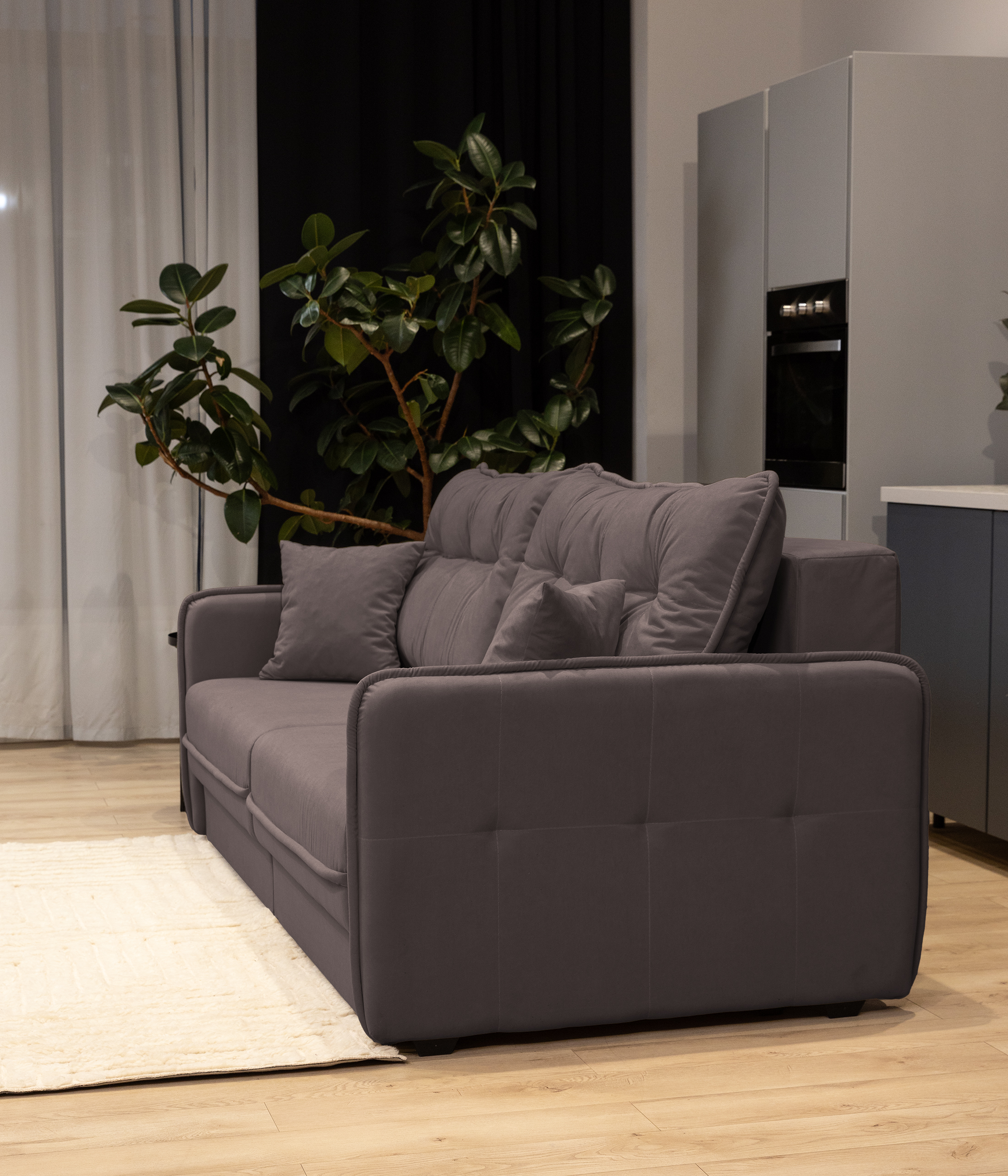 Диван Бордена — это стильное и функциональное решение для вашего интерьера. Узкие подлокотники придают легкость и современный вид, а мягкие подушки с утяжками обеспечивают комфорт. Возможность раскладывать каждую секцию отдельно позволяет легко трансформировать диван из прямого в угловой, что идеально подходит для небольших пространств.