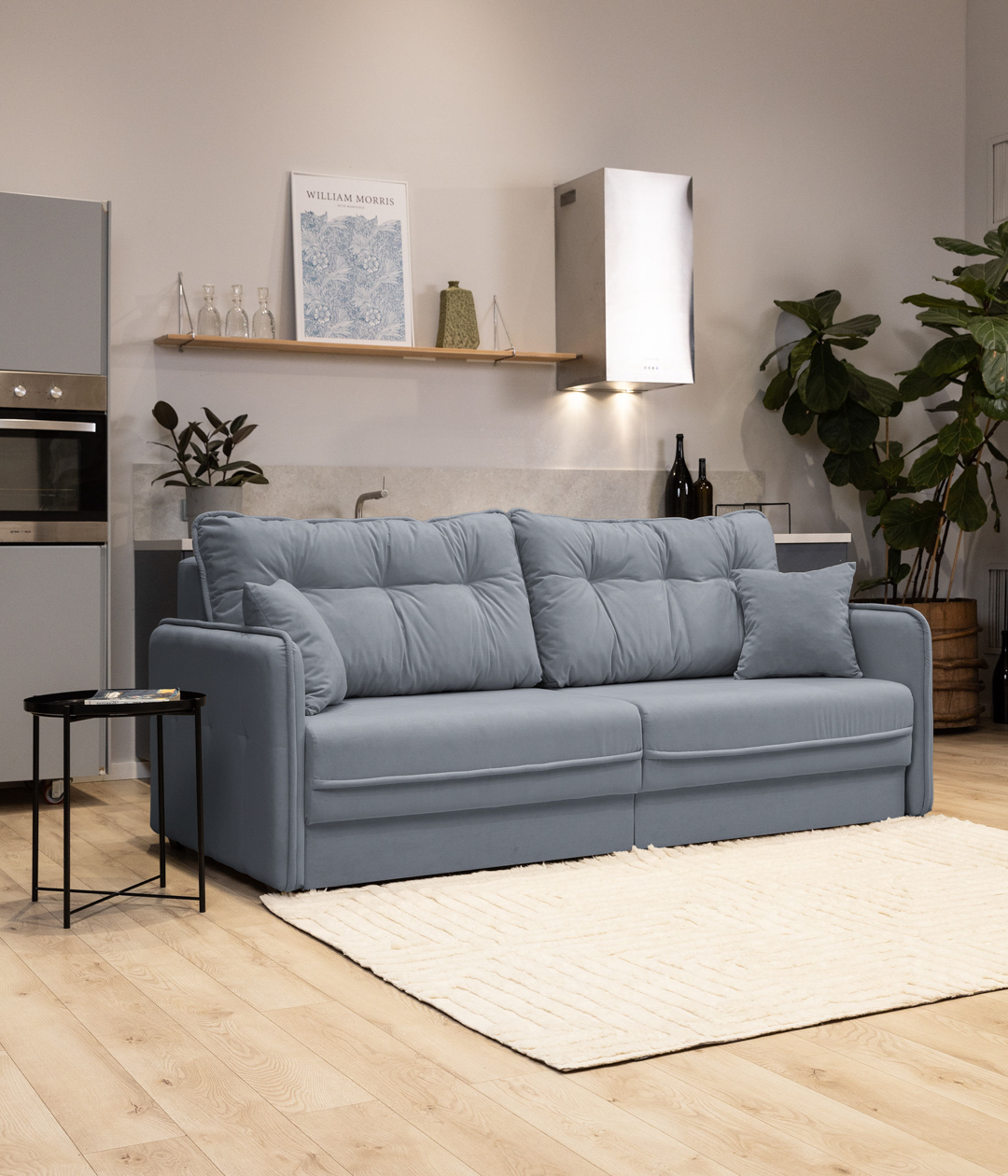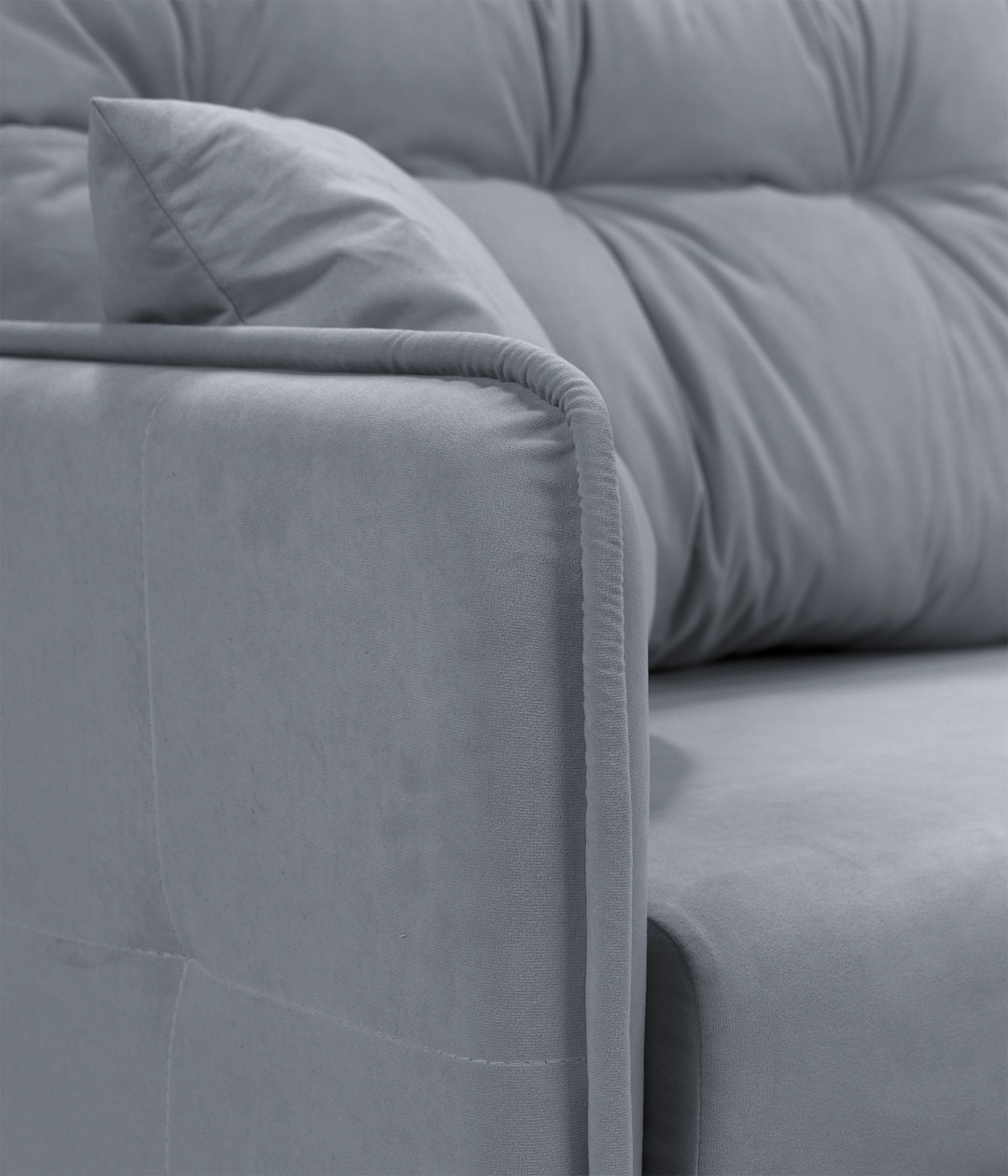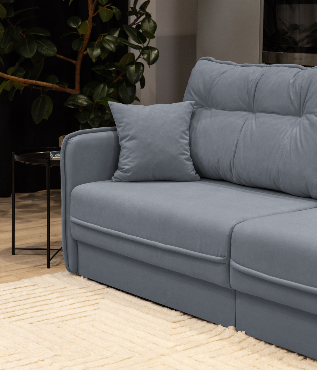 Диван Бордена — это стильное и функциональное решение для вашего интерьера. Узкие подлокотники придают легкость и современный вид, а мягкие подушки с утяжками обеспечивают комфорт. Возможность раскладывать каждую секцию отдельно позволяет легко трансформировать диван из прямого в угловой, что идеально подходит для небольших пространств.