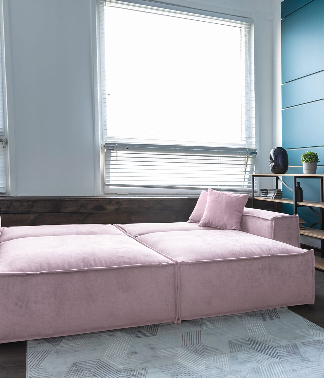 Диван Бостон Шенилл Lounge цвета Фламинго и гостиная Лофт