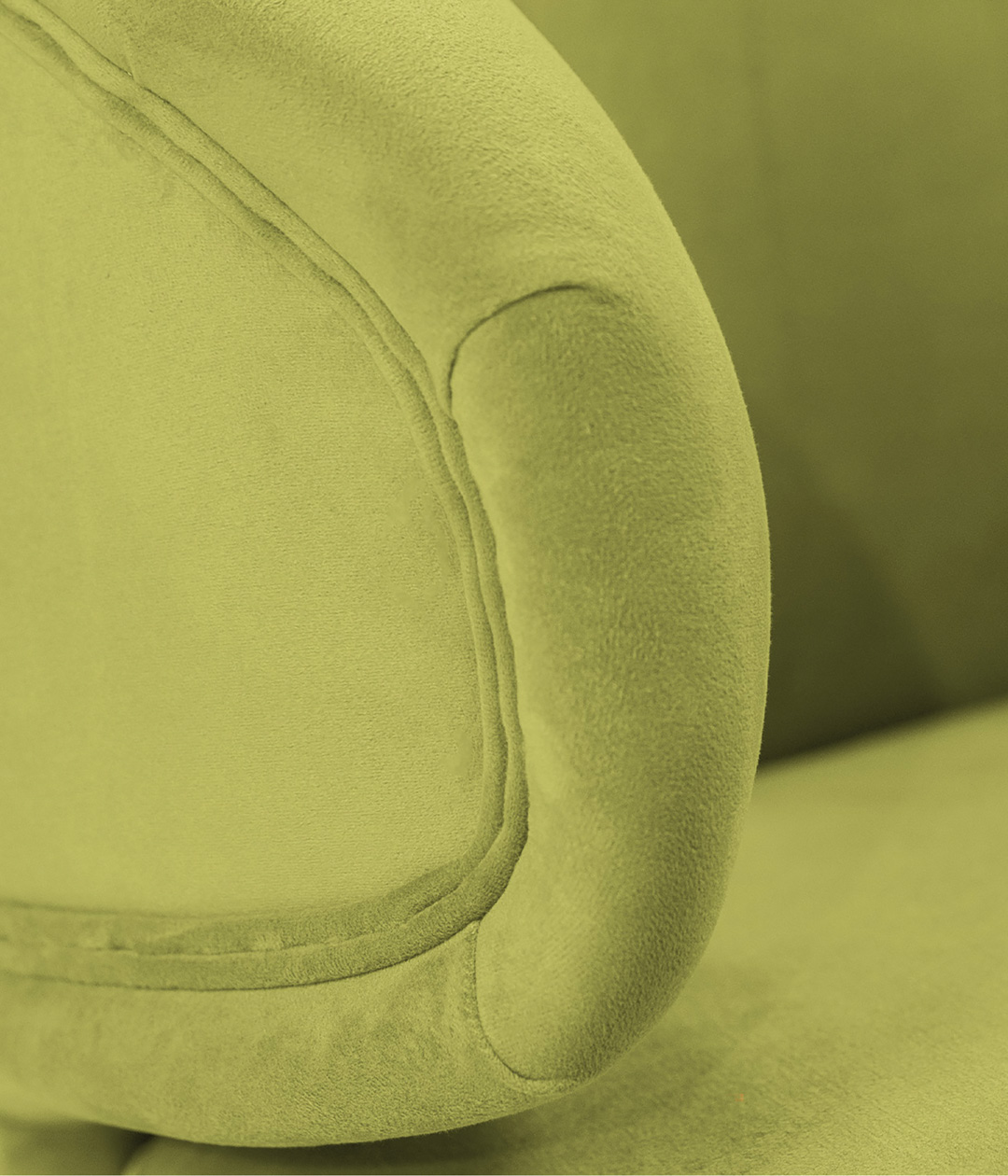 Высокие ножки кресла делают его форму легкой, максимально открывая пространство. К тому же, такая конструкция упрощает уборку, делая доступным напольное покрытие.