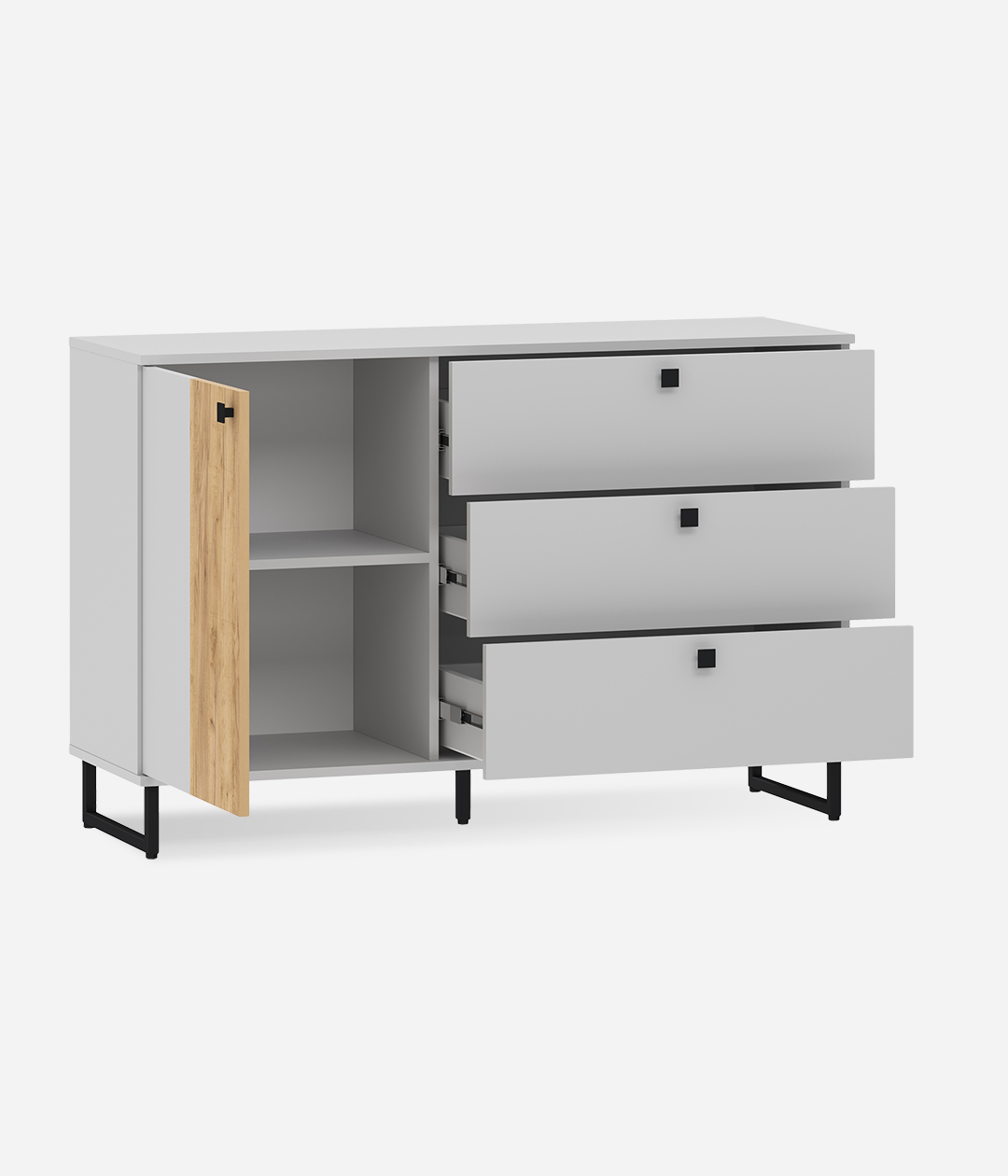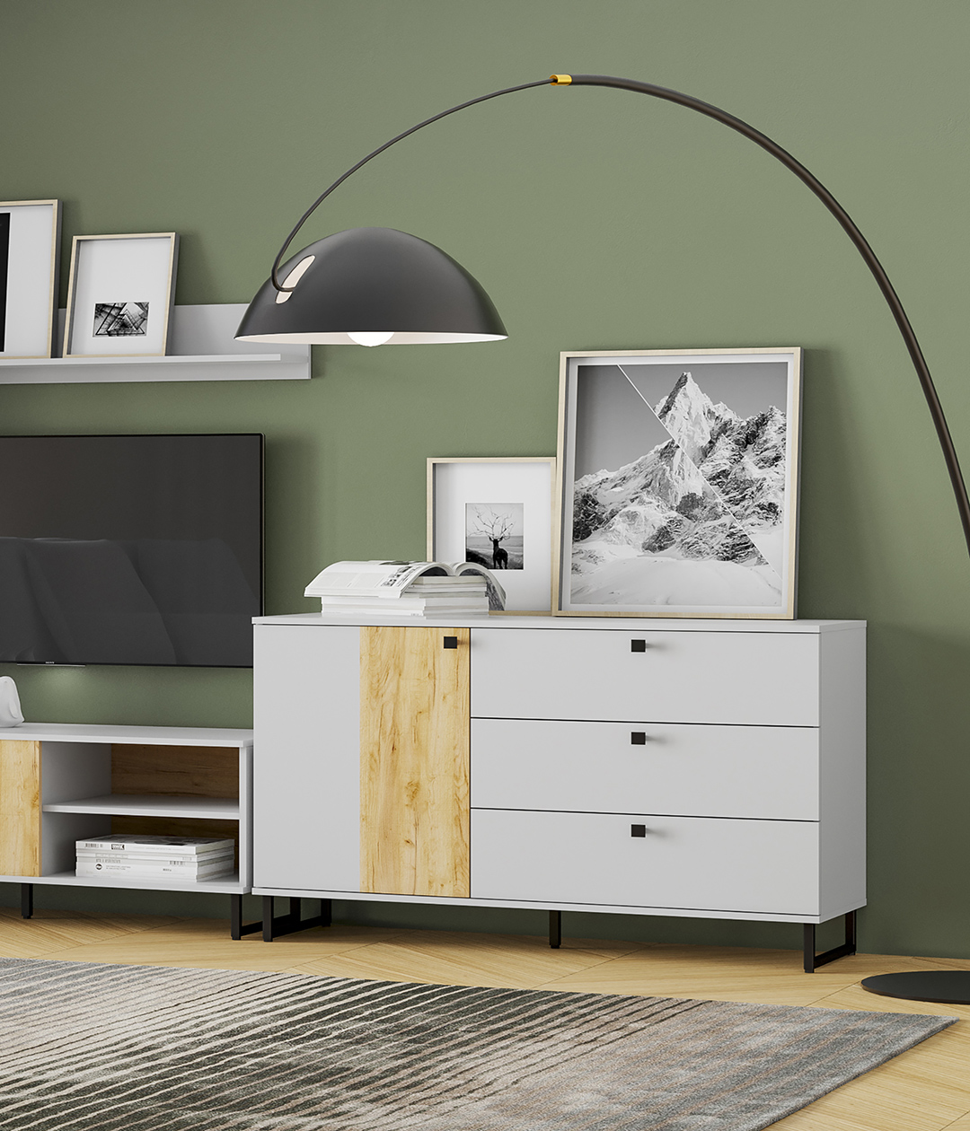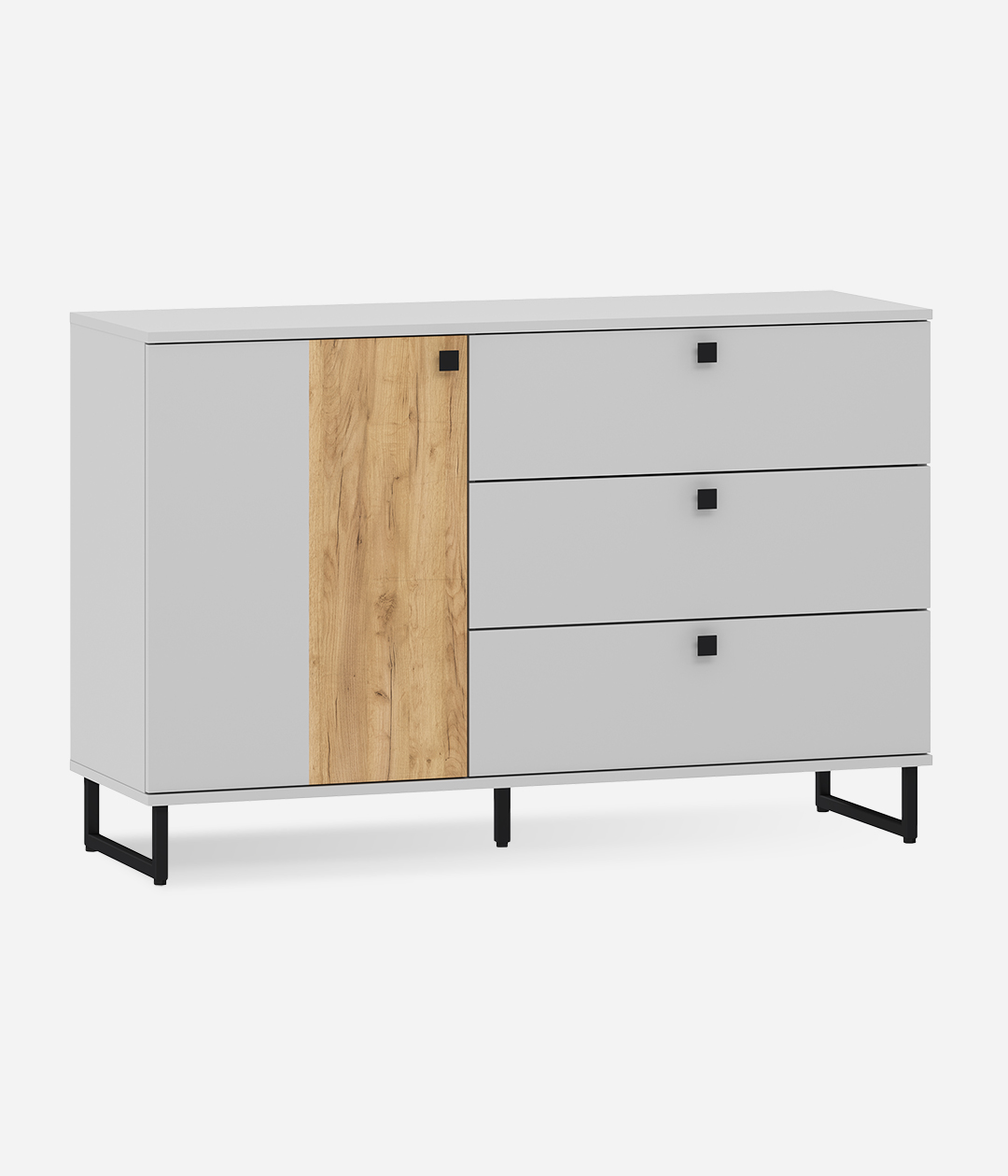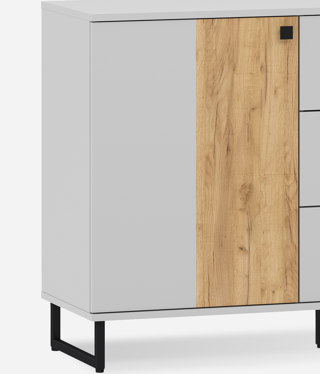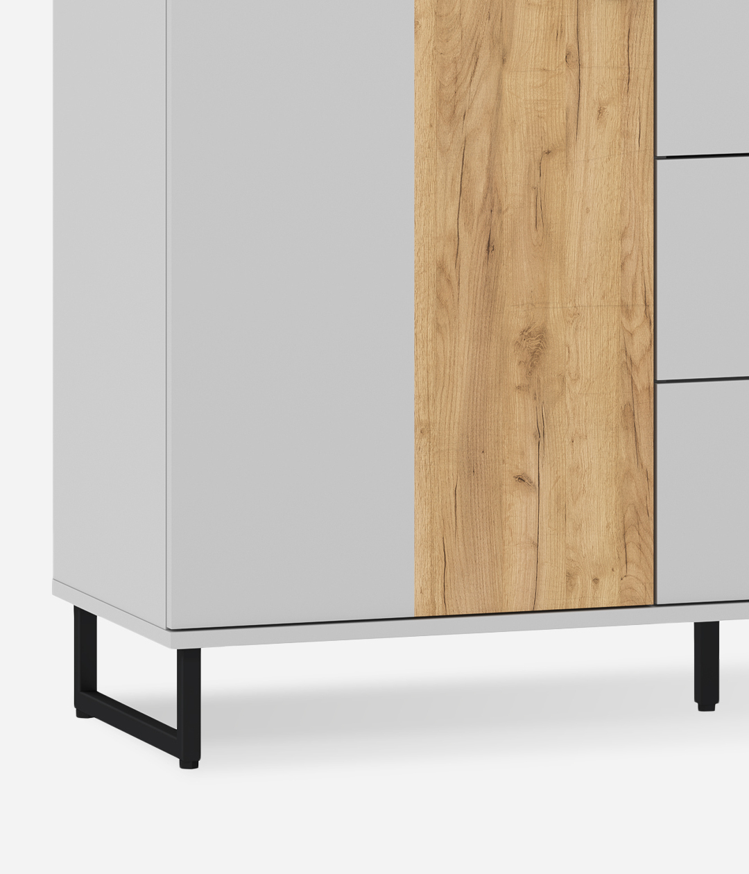 Бруно - современный дизайн с характером. Цвет платиново-серого и золотого дуба подчеркнут контрастными элементами - чёрными ручками и чёрными металлическими опорами. Модульная коллекция, состоящая из отдельных элементов, призвана максимально продуктивно использовать пространство и придать ему стильный и современный вид. Контрастные текстуры — эффектное сочетание двух абсолютно разных цветов, которые, при этом, гармонично смотрятся вместе.