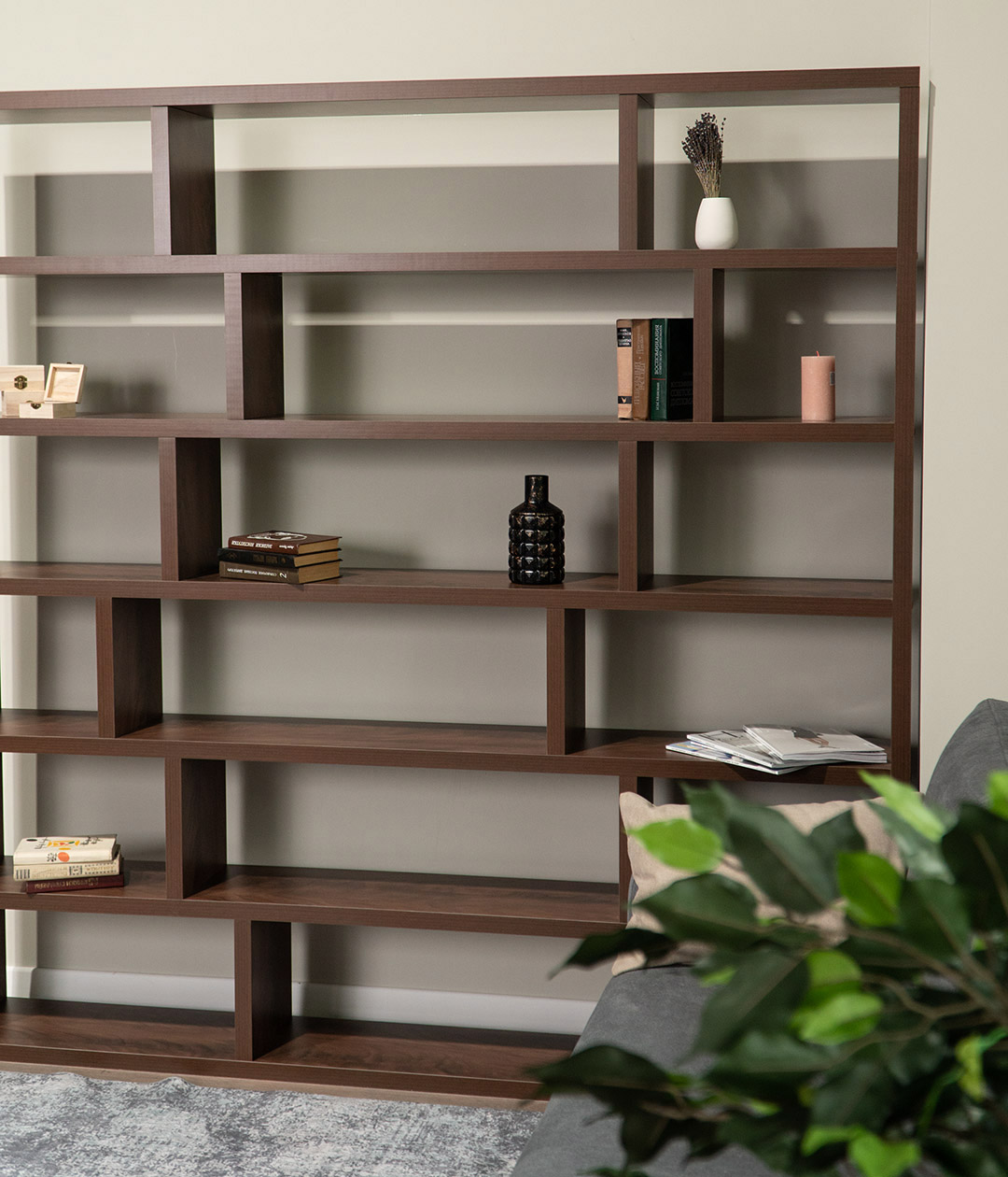 Практичный стеллаж впишется в любое помещение вашего дома. Благодаря двусторонней отделке, может служить зонирующей перегородкой или устанавливаться зеркально. Скрытый крепеж обеспечивают идеальный внешний вид. Простая самостоятельная сборка и разборка, инструмент и фурнитура в комплекте. Дизайнерски комбинируется с другими продуктами RIDDLE.