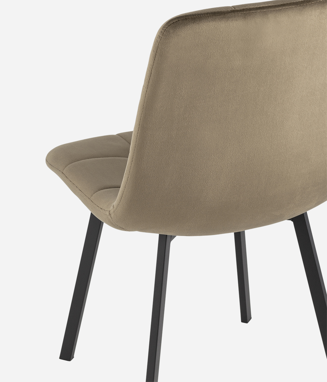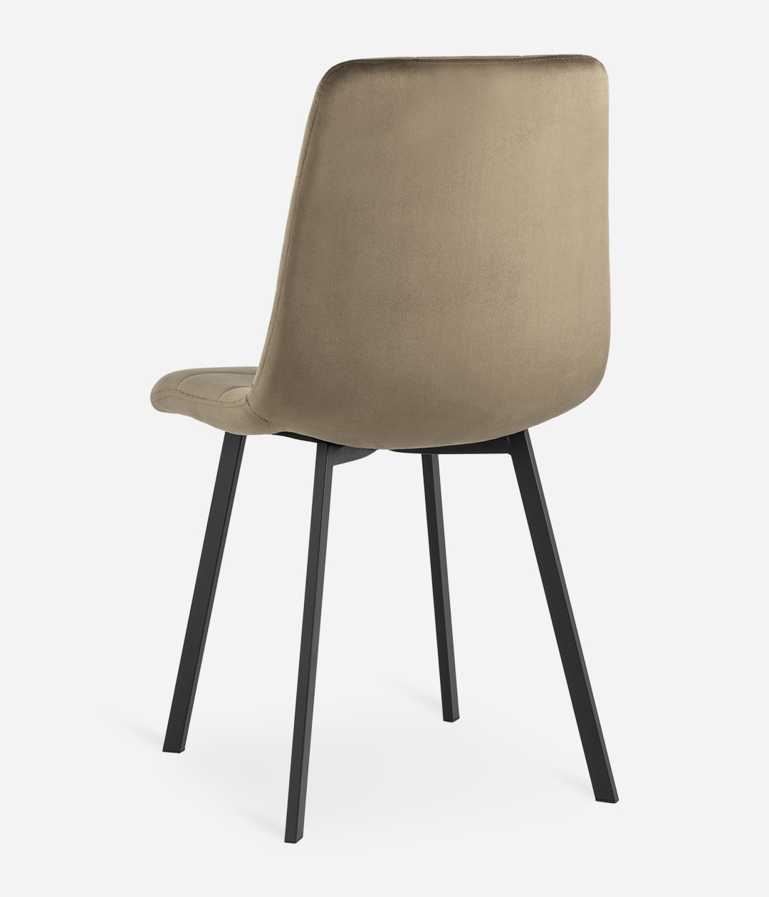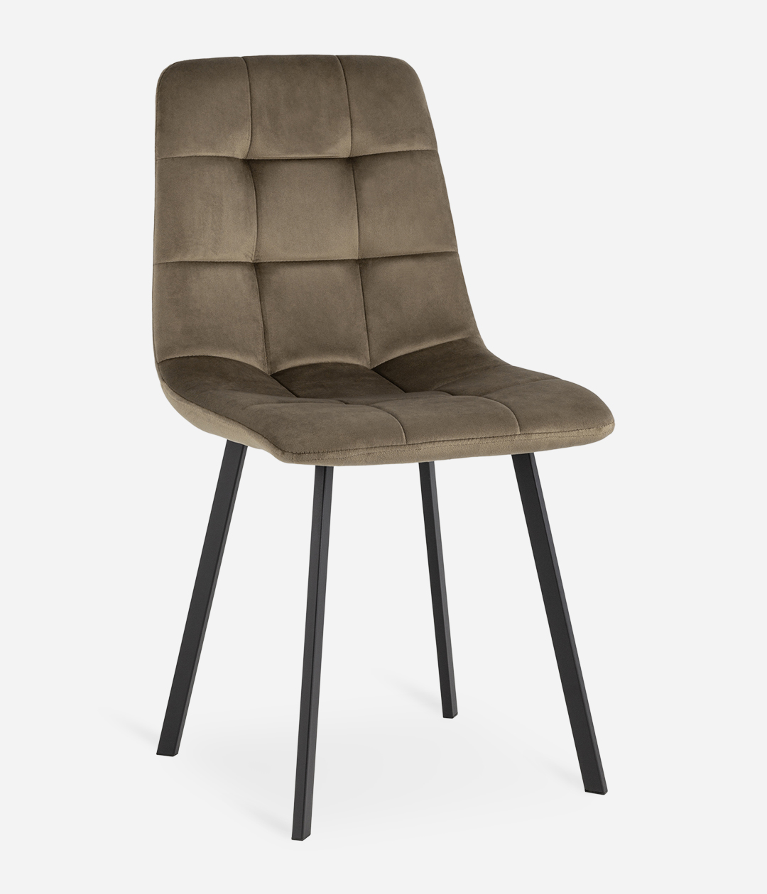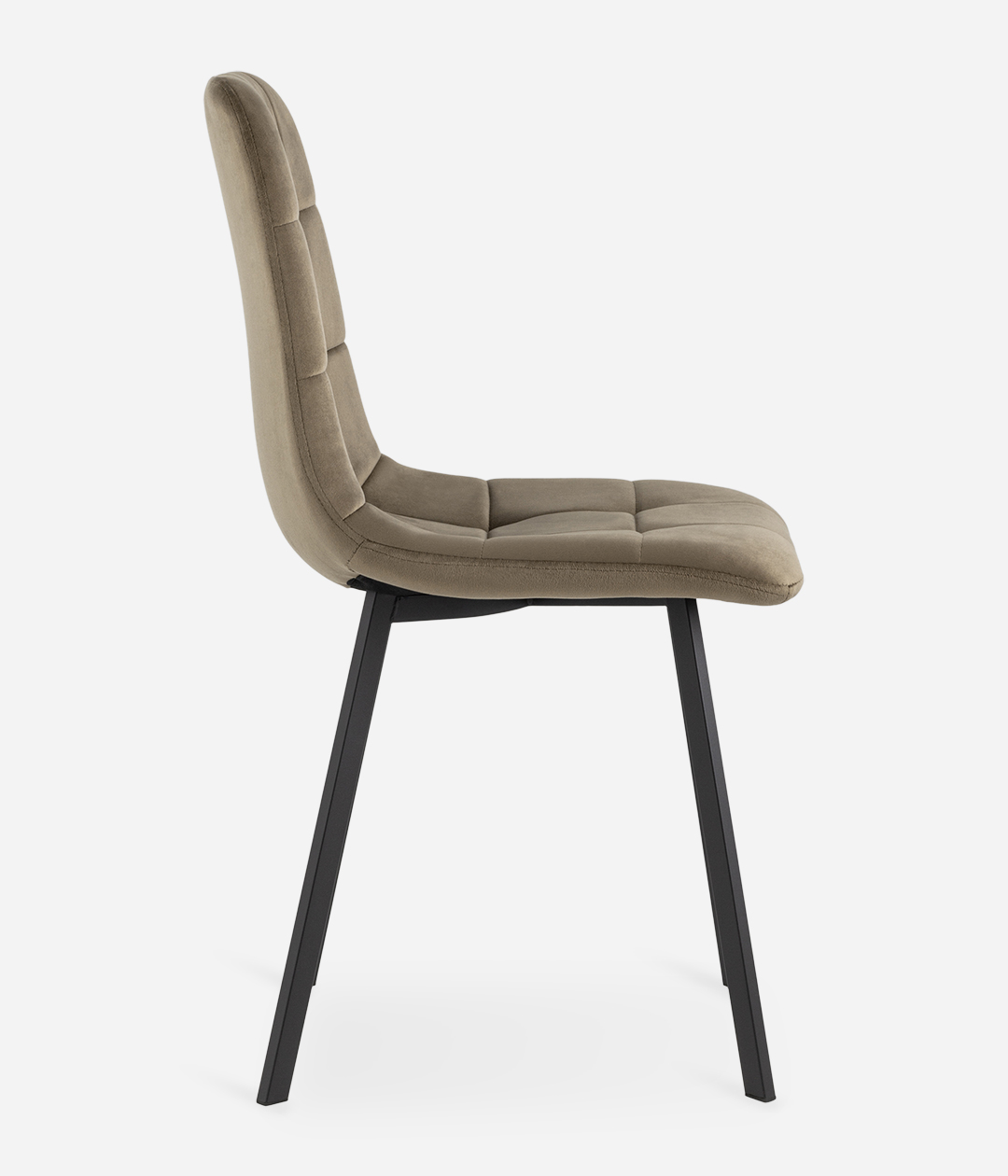 Классический стул в мягкой обивке из велюра без подлокотников. Анатомическая форма сиденья обеспечивает удобство, а декоративная стяжка придает объём и защищает от образования вмятин. Металлические ножки выдерживают значительные нагрузки.