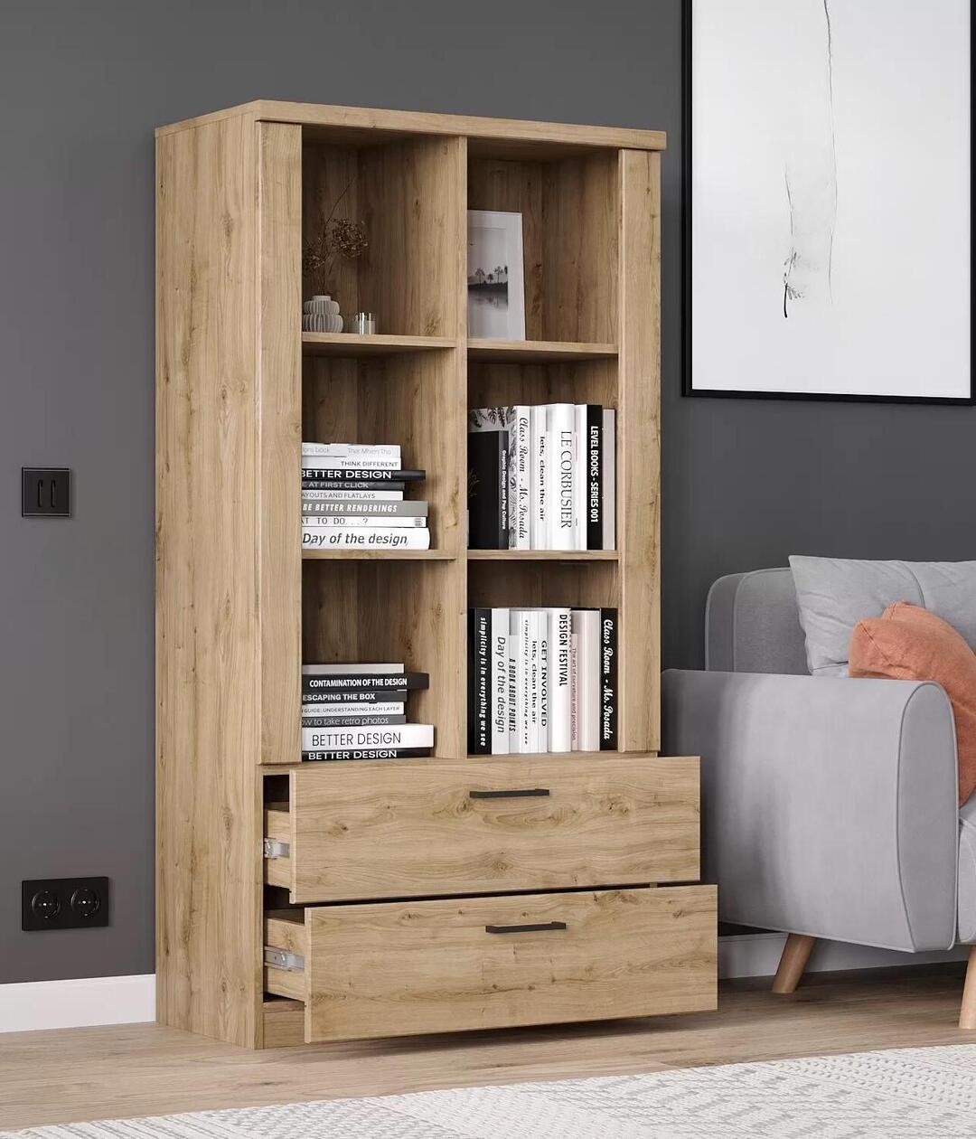 Шкаф Дорсет 2S6N свободно уместит на своих полках коллекционные книги и предметы декора – всё, что представляет ценность и хочется продемонстрировать гостям. Сама модель имеет удобную конструкцию: в верхней половине открытые полки, внизу расположены выдвижные ящики.