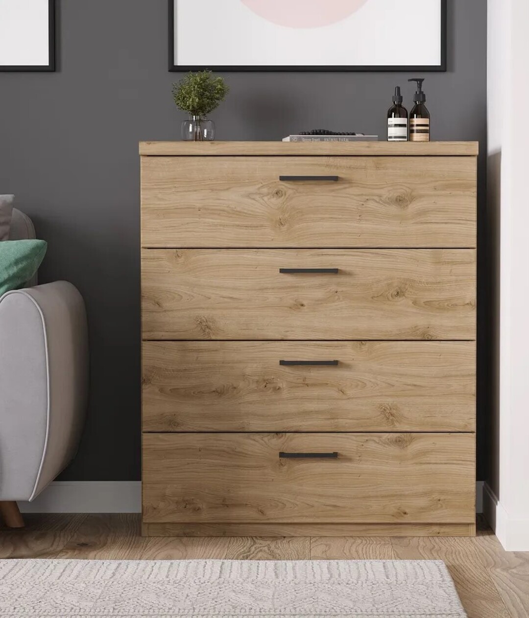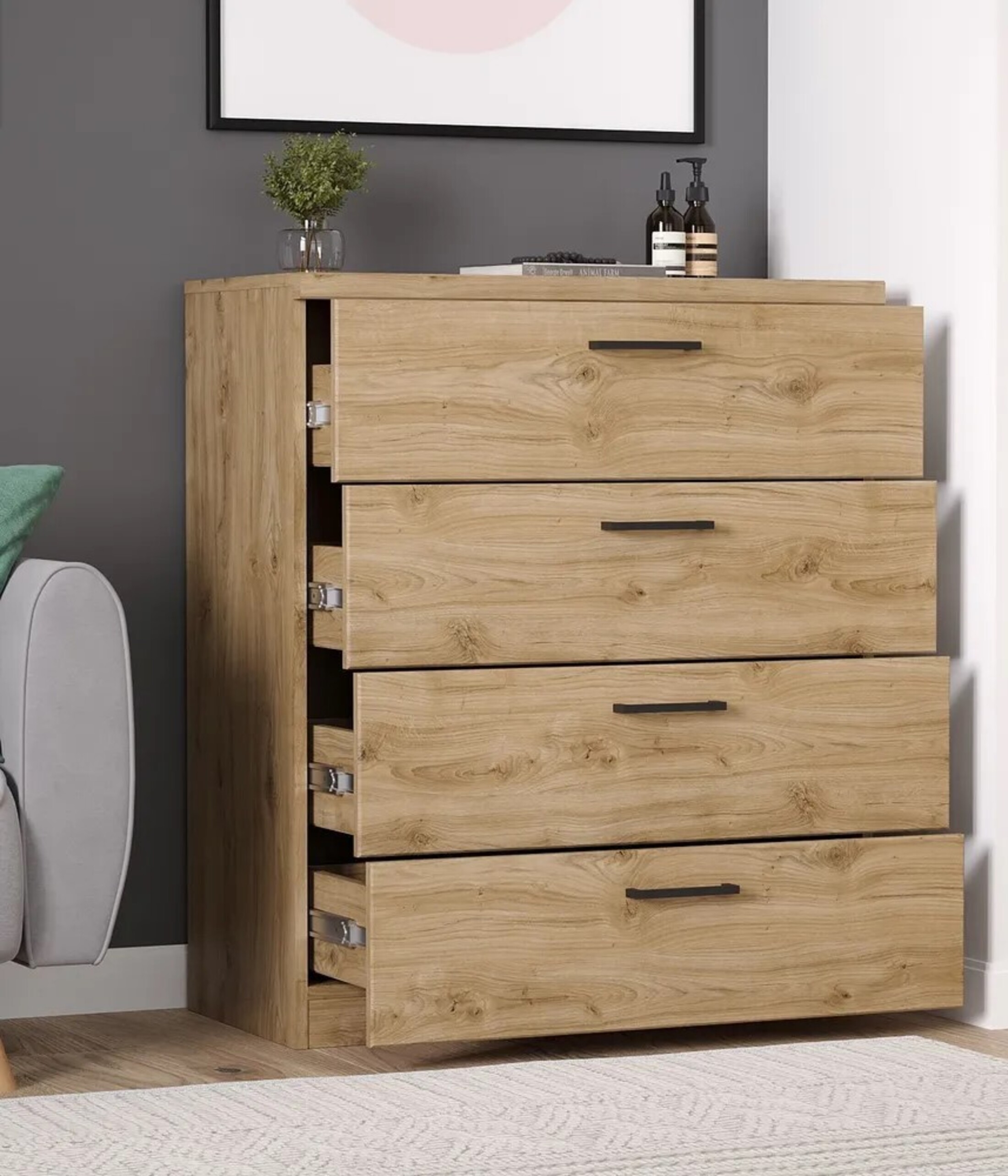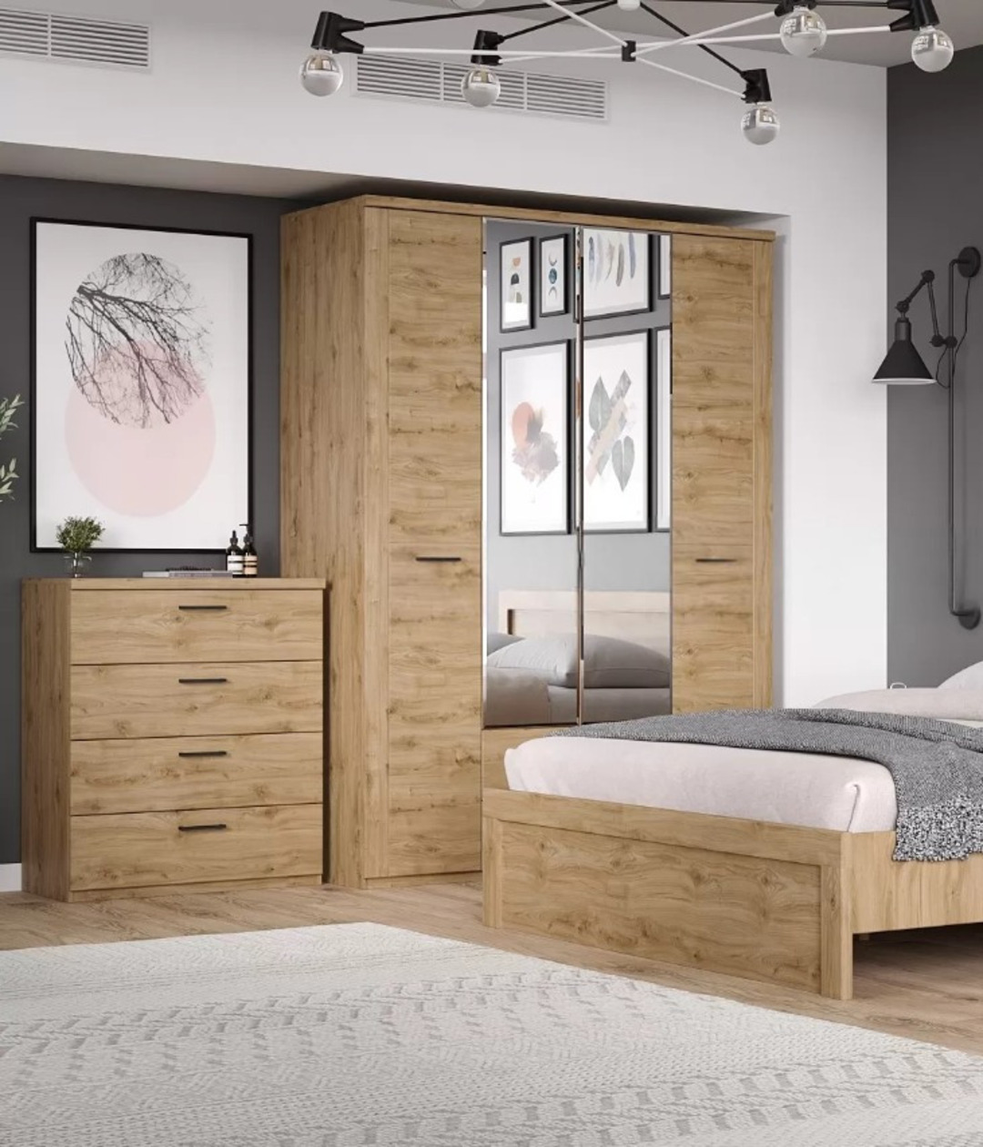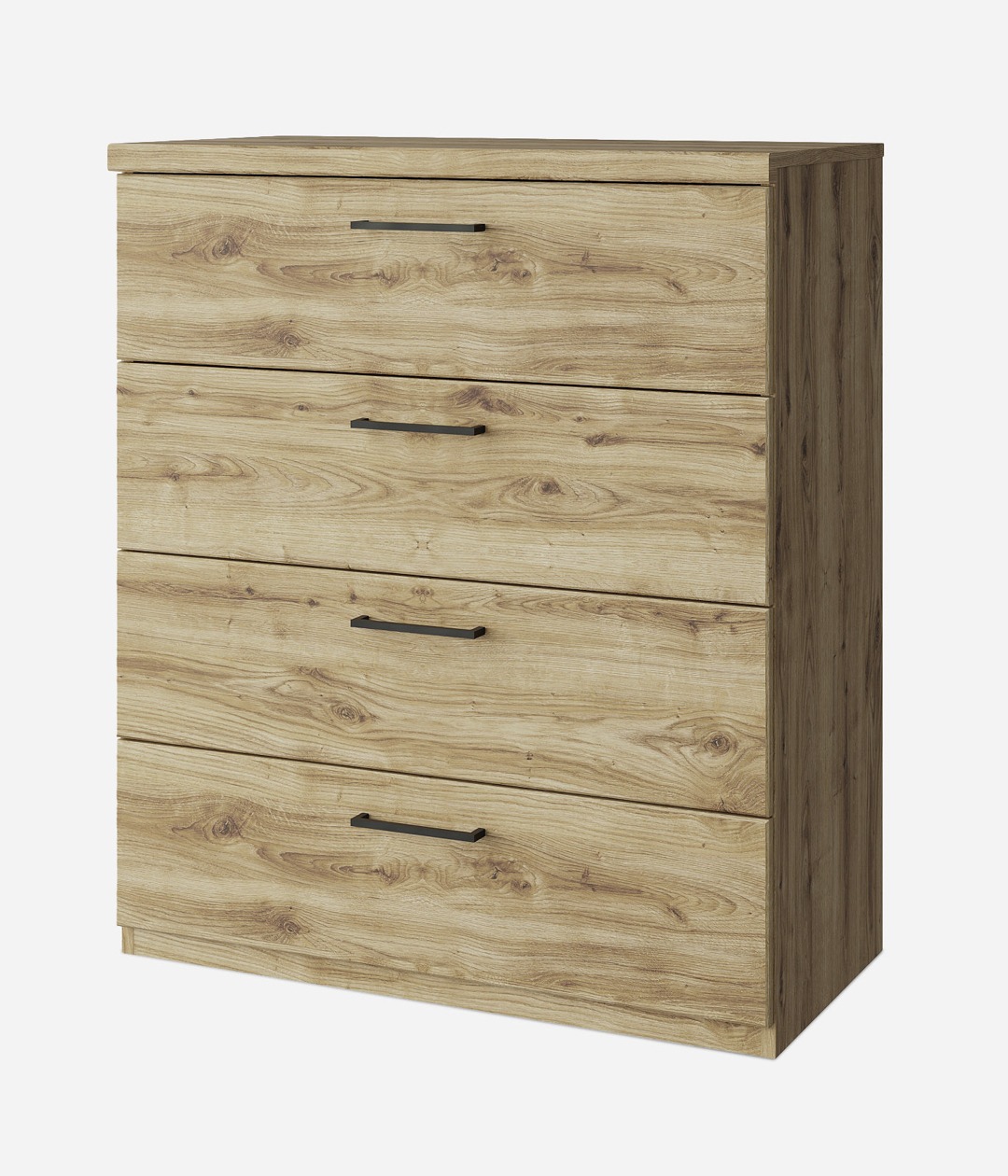 Напольный комод Дорсет 4S – не просто предмет интерьера. Прежде всего, он выполняет функцию хранения и гармонично вписывается в современный стиль. Такая модель выглядит просто и неброско. Каркас установлен на цоколе. Это одна из самых надежных и устойчивых опор. Легкий монохром с текстурой дуба наварра и совершенно плоские поверхности без декоративных вензелей и украшений. В его отделке преобладает простота и сделан акцент на древесной фактуре.