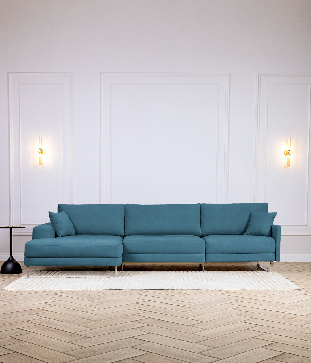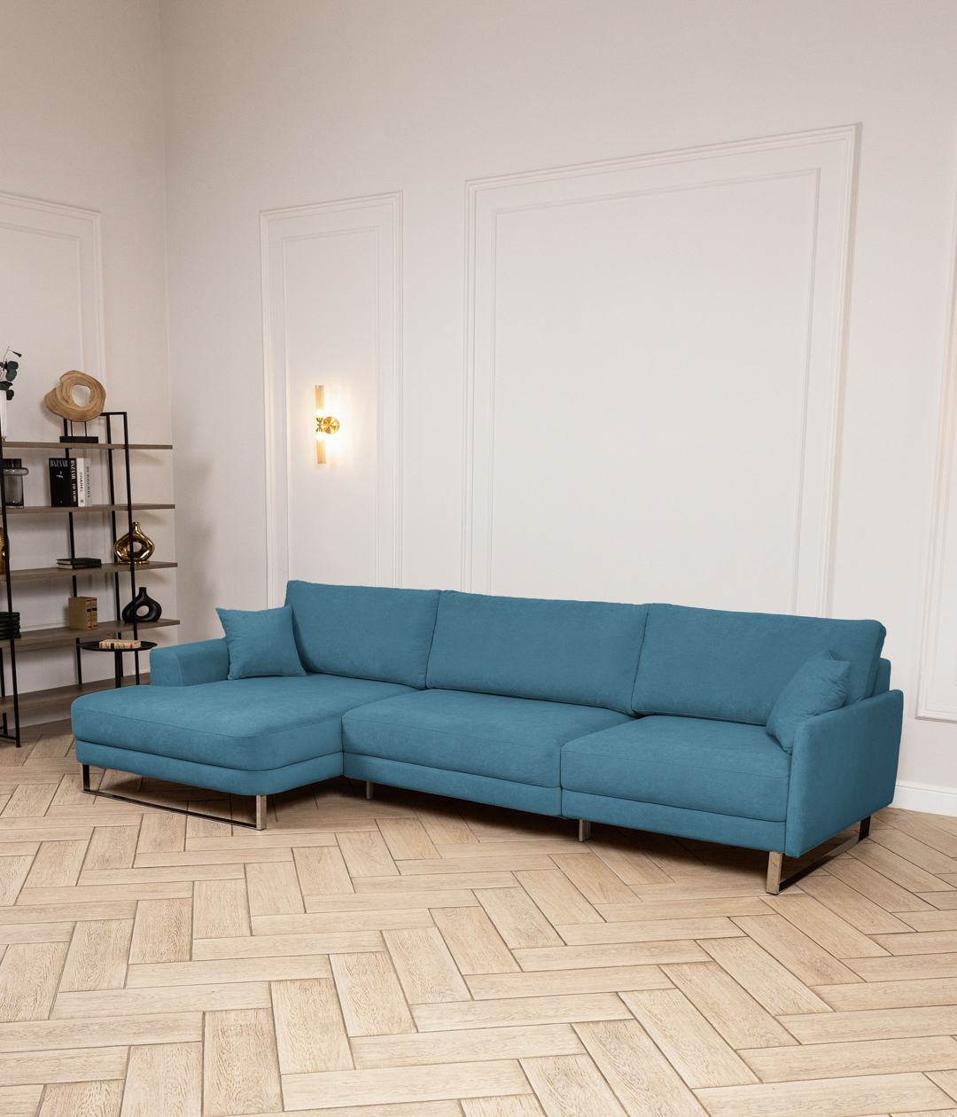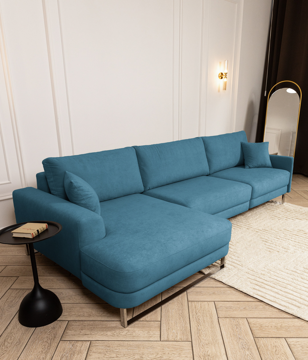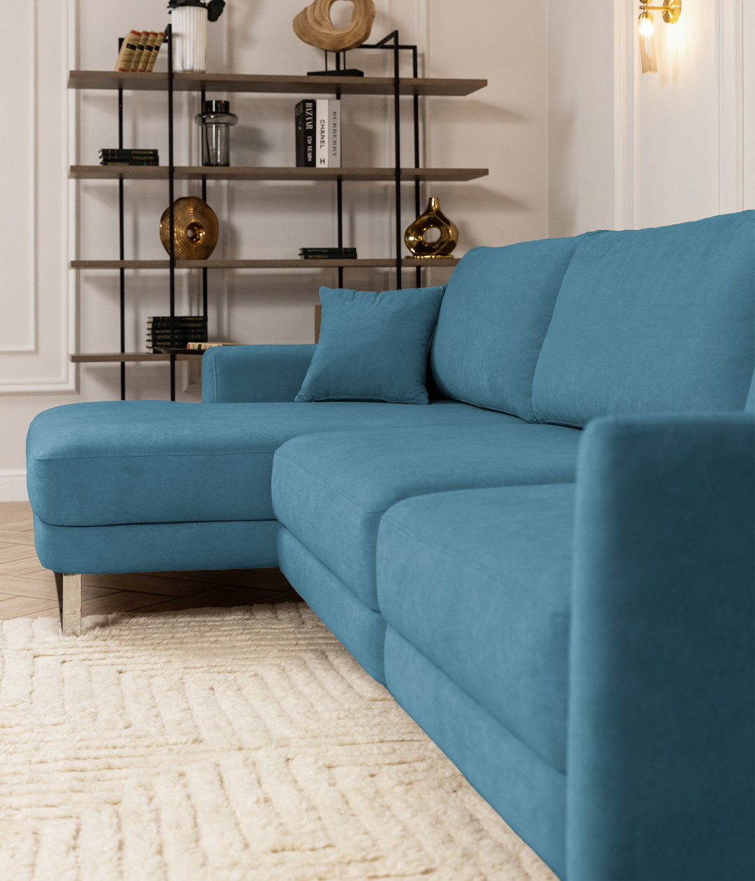 Новый тренд в мягкой мебели. Благодаря высоким ножкам диван выглядит лаконично и элегантно, придавая интерьеру лёгкость и уют. Кроме того, такая конструкция упрощает уборку под диваном.