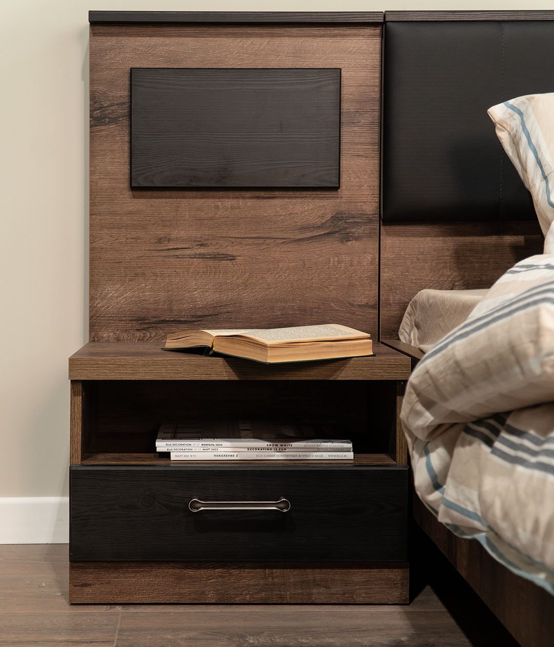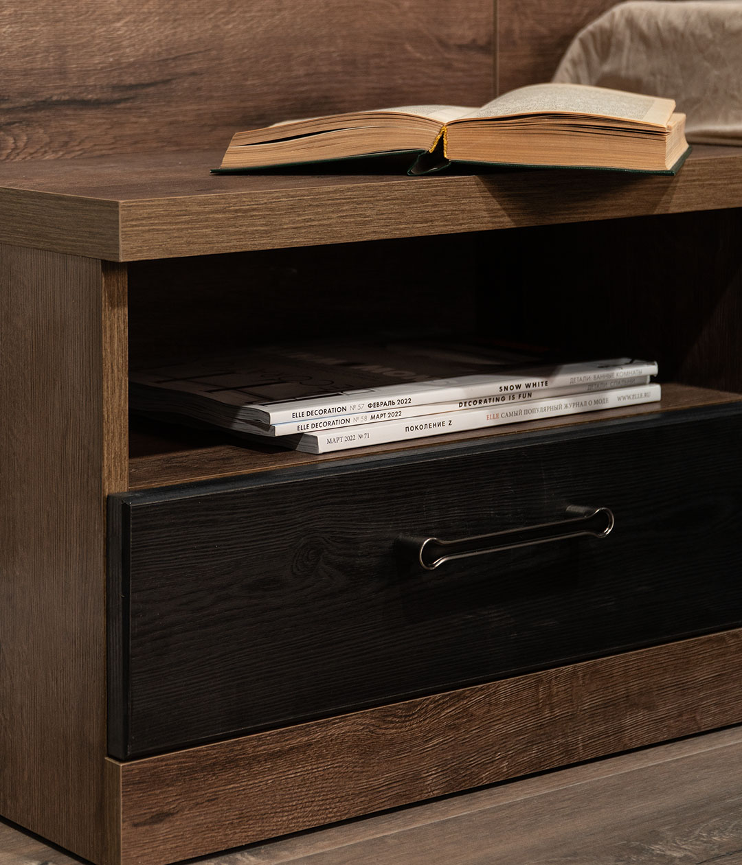 Тумба Джаггер - представитель коллекции, сочетающей современный стиль и хорошо продуманный функционал. Темная отделка подчеркнет индивидуальность, комфорт и не выходящую из моды элитарность.