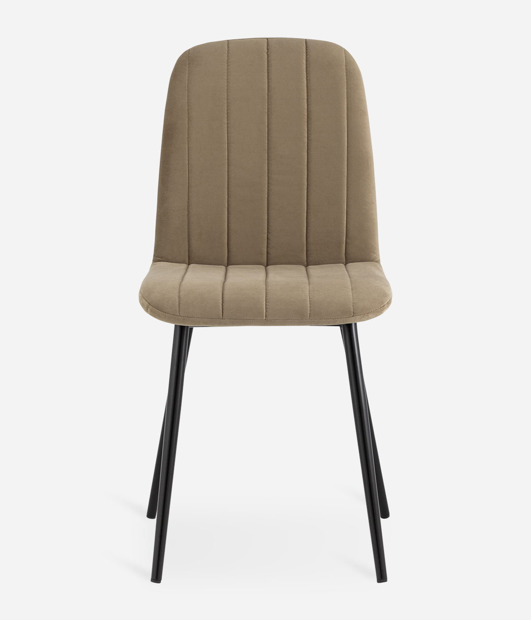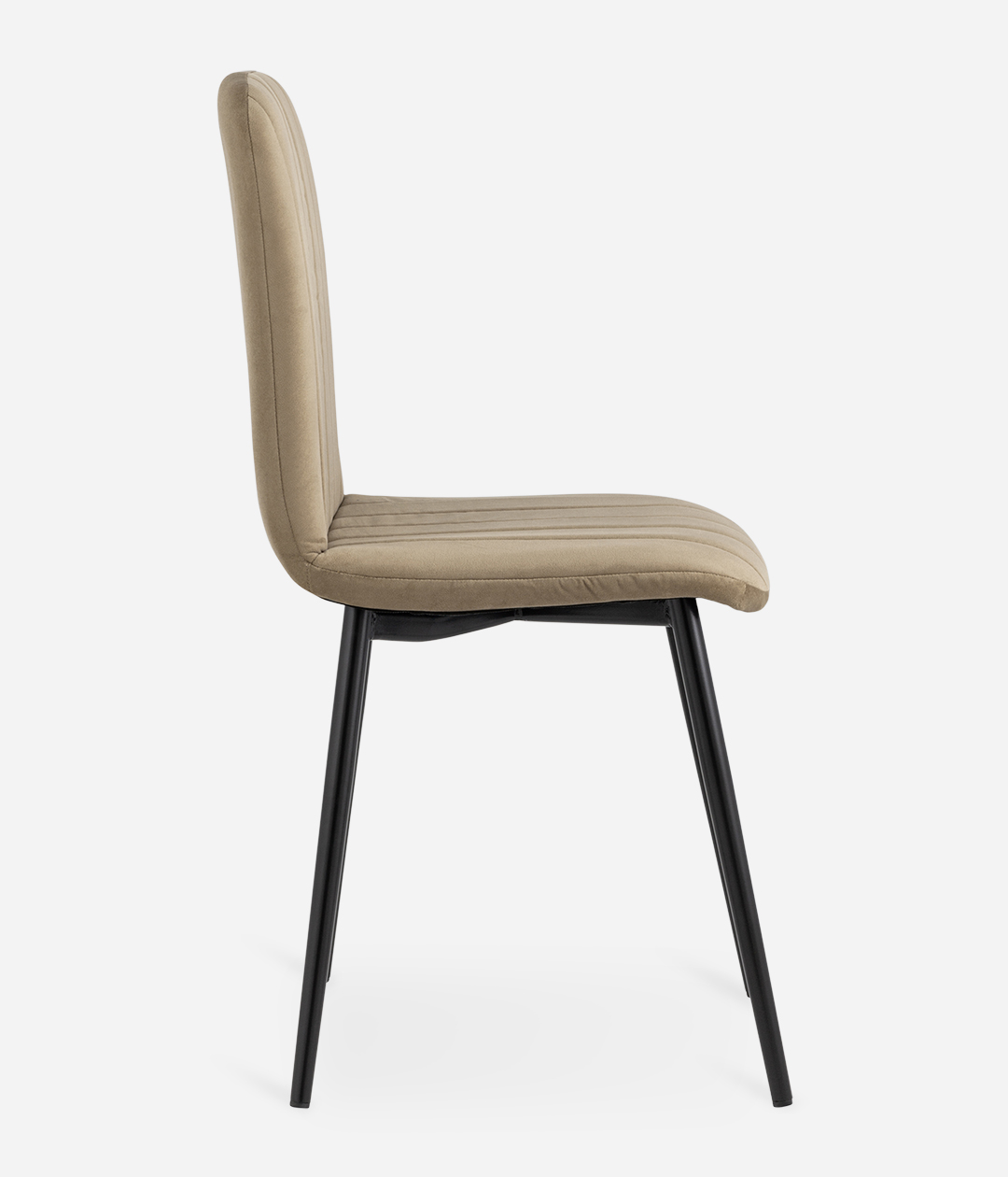 Классический обеденный стул без подлокотников на металлическом каркасе.