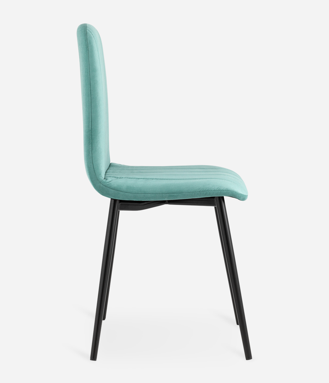 Классический обеденный стул без подлокотников на металлическом каркасе.