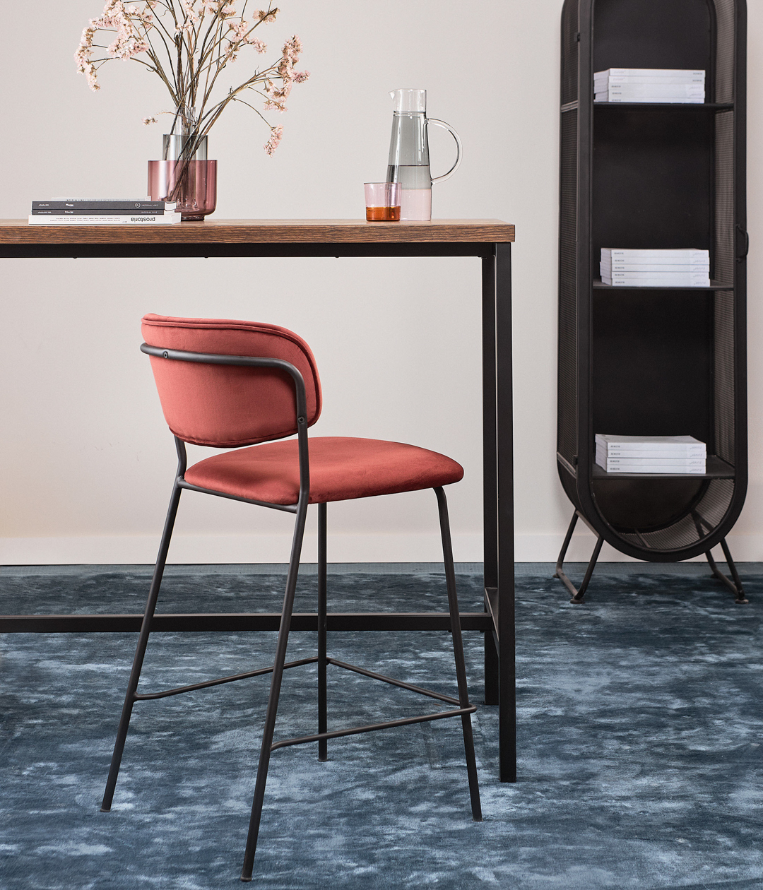 Стул барный Eirill с обивкой из бархатистого велюра смотрится стильно и благородно. Плавные формы и декоративная строчка делают дизайн элегантным.
