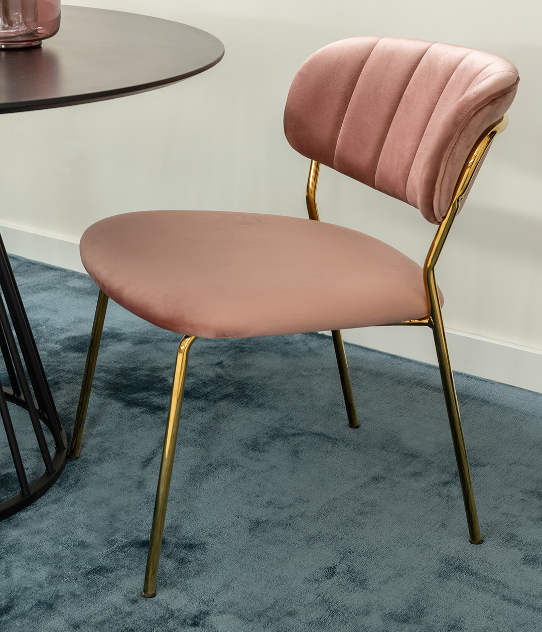 Стул Eirill с обивкой из мягкого, бархатистого велюра смотрится стильно и благородно. Материал приятный на ощупь, износостойкий и нетребовательный в уходе.