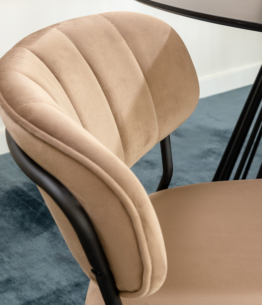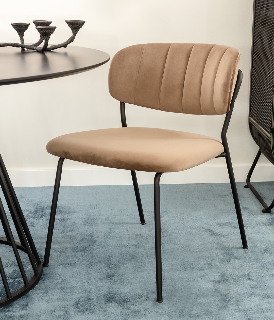 Стул Eirill с обивкой из мягкого, бархатистого велюра смотрится стильно и благородно. Материал приятный на ощупь, износостойкий и нетребовательный в уходе.