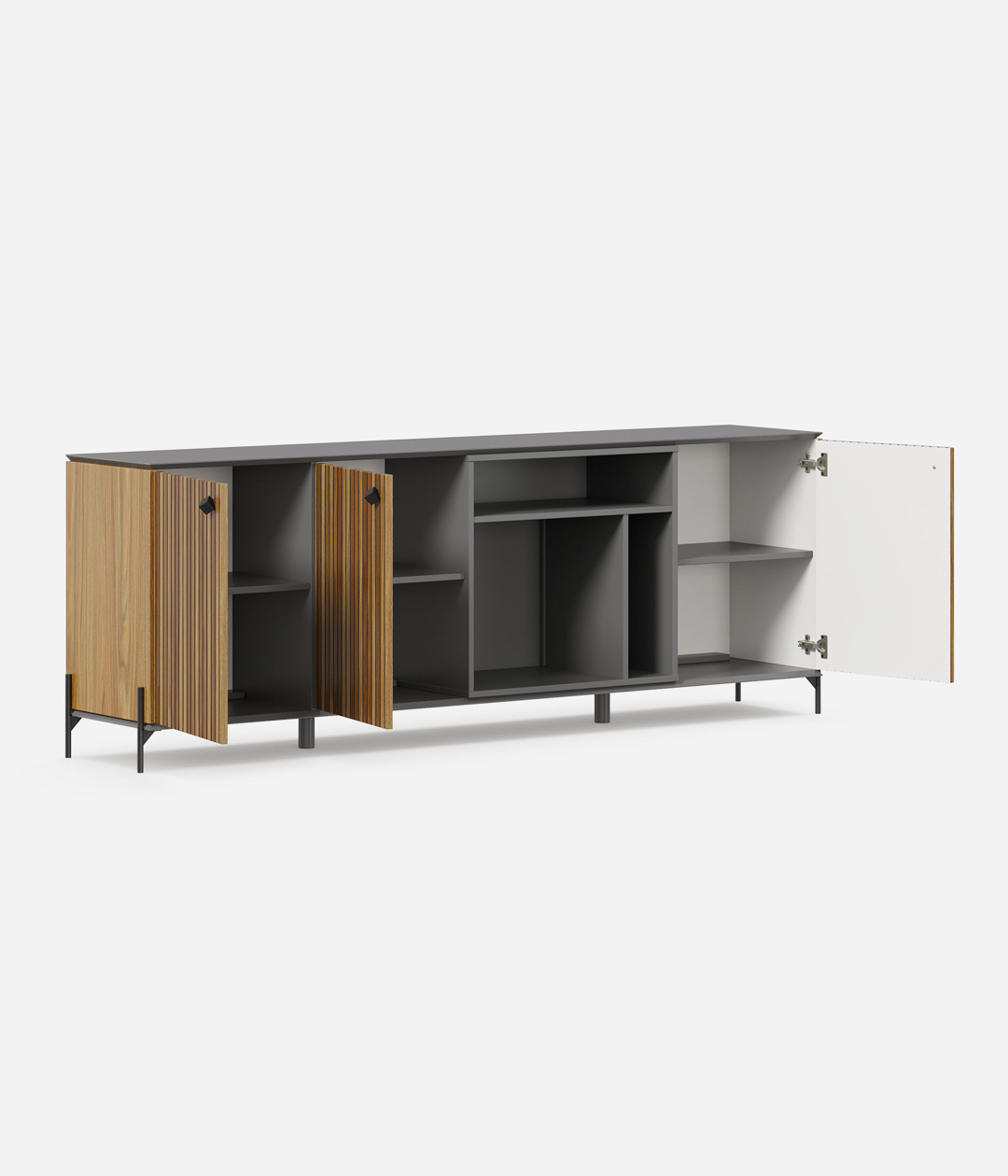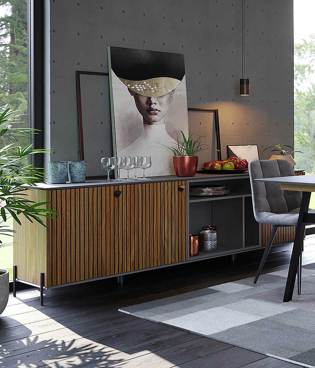 Комод Элиот — это идеальная модель для гостиной в стиле лофт. Природный минимализм гармонично дополнен стильными акцентами — высокие опоры из металла и надежный фасад в ореховом цвете, в котором главная роль отведена практичности и функциональности.