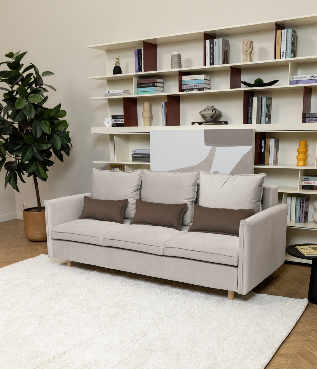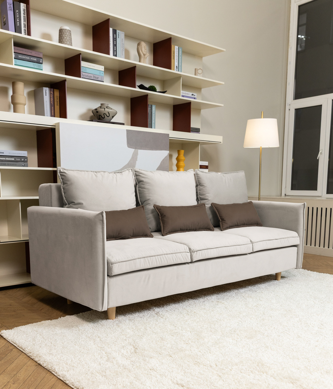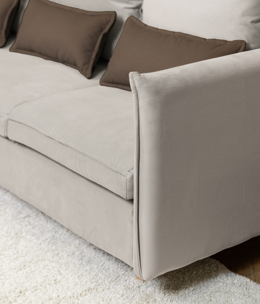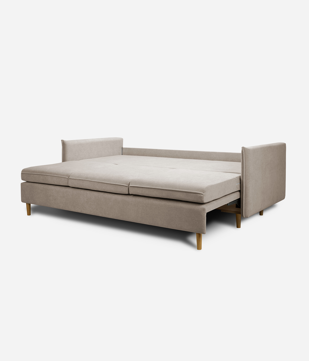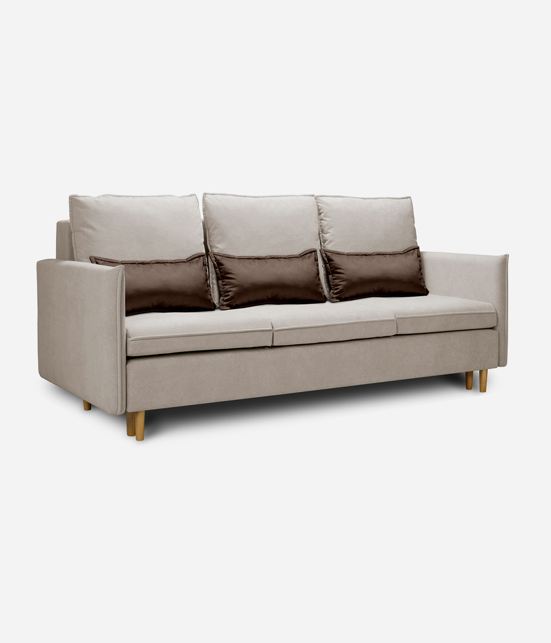 Диван Эмден отличается утонченным дизайном с элегантными линиями и современными элементами. Узкие подлокотники экономят пространство, что делает его идеальным для небольших помещений. Деревянные ножки придают легкость, а мягкие подушки обеспечивают комфорт. Приятная обивка создает уют, а надежный механизм трансформации позволяет легко превращать диван в спальное место для гостей.