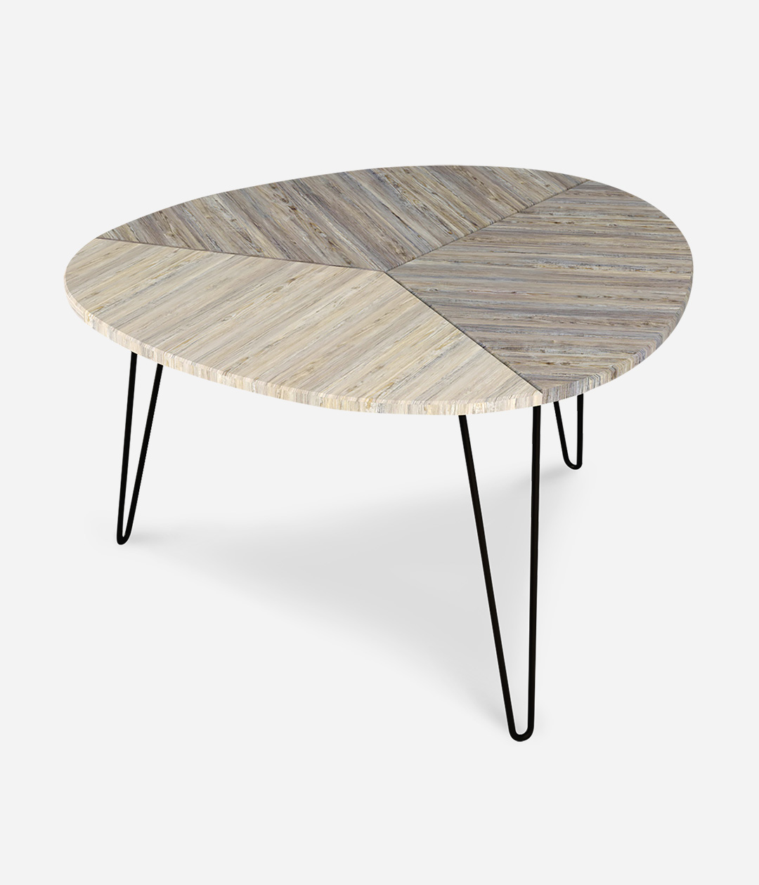 Дизайнерский столик «Эйтон» выполнен в слиянии двух стилей: в нем соединились ножки из металла в стиле лофт и столешница в цветовом решении скандинавского стиля. Изюминкой этого стола является оригинальное сочетание деталей столешницы, направление текстуры декоративного покрытия и комбинации цветов.