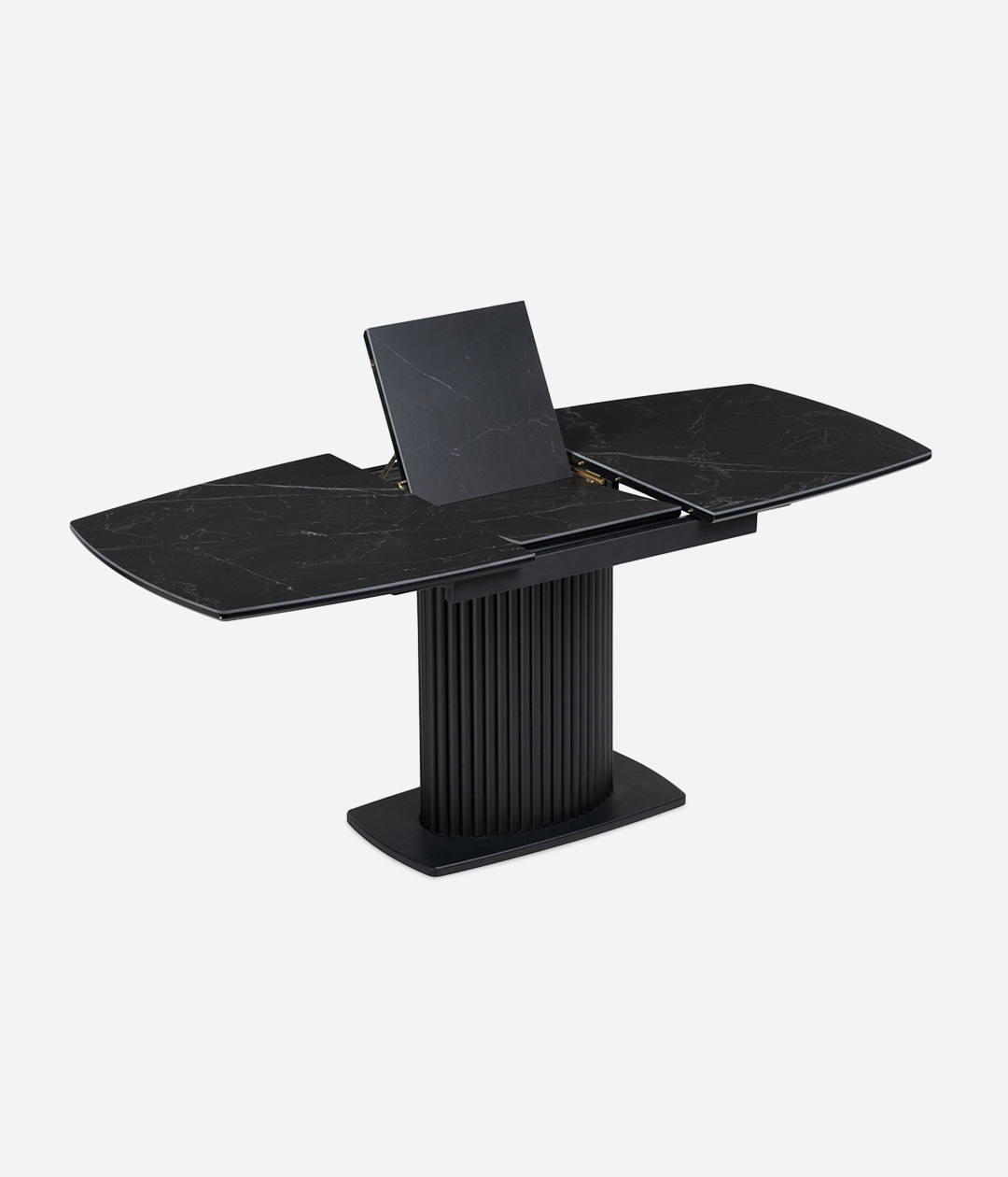 Стол Фестер- это стильное и функциональное решение для вашей столовой или кухни. Раскладной стол выглядит смело и оригинально. Черная металлическая ножка является центральным элементом, притягивает внимание своей необычной формой и четкой геометрией. При этом опора обеспечивает непревзойденную устойчивость.