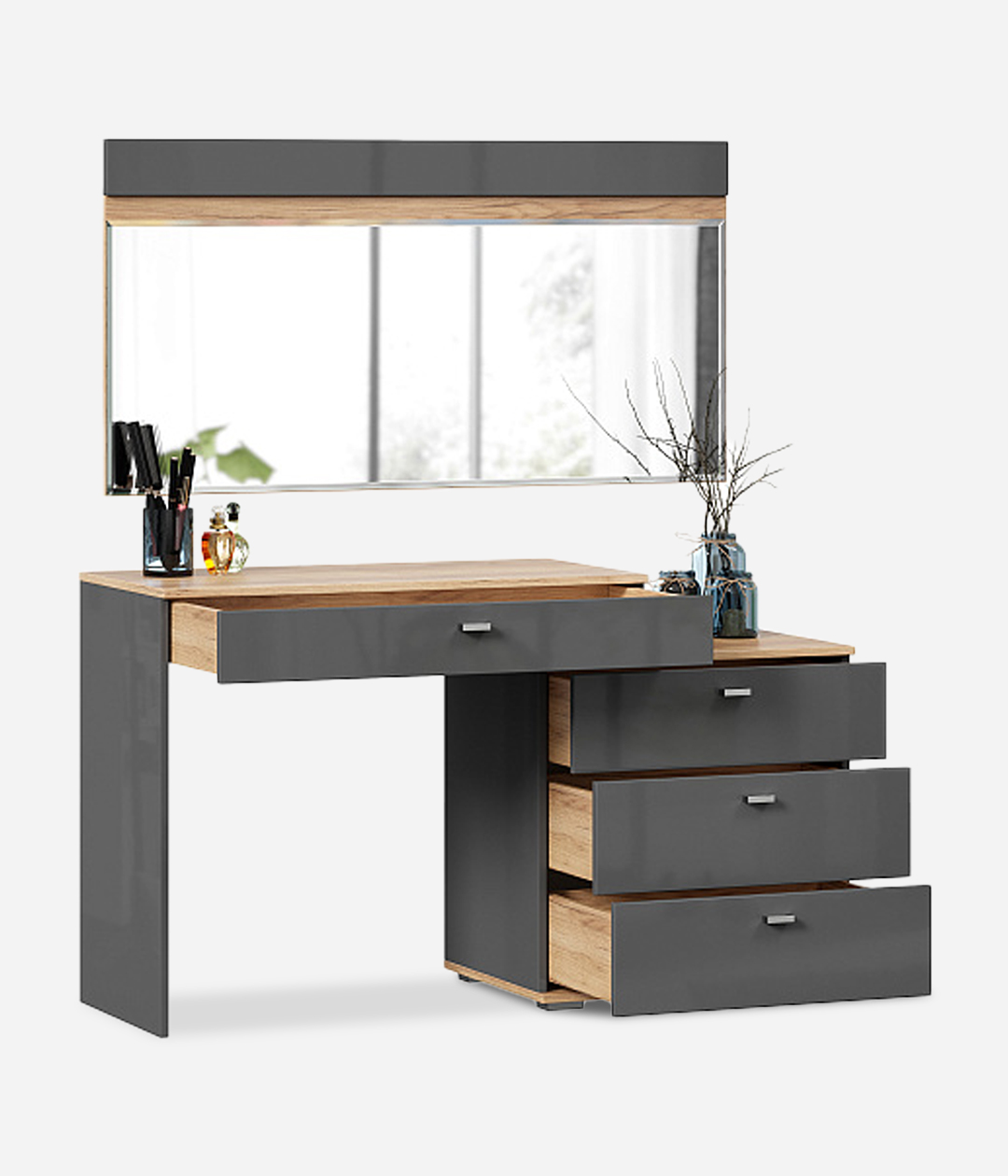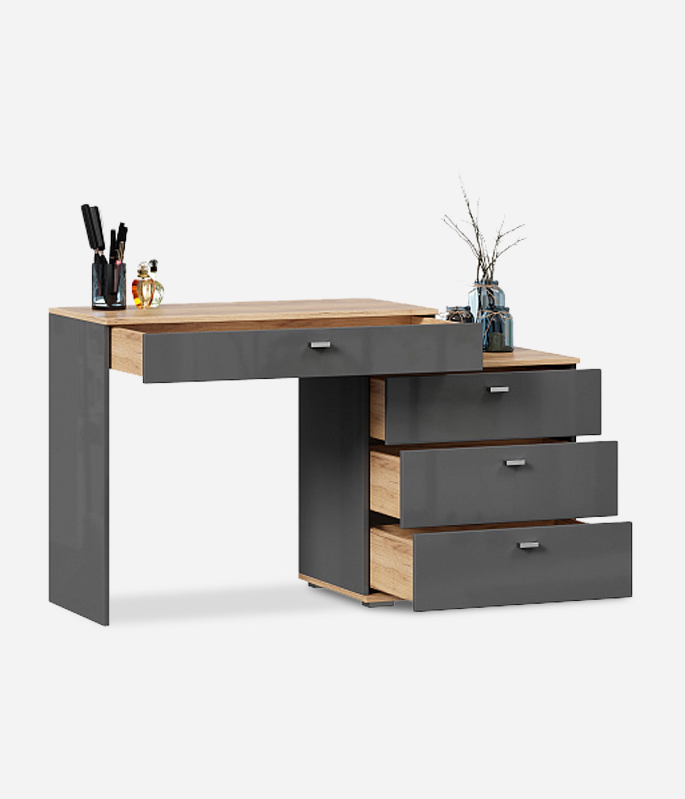 Туалетный столик «Фиджи» с четырьмя ящиками займёт особое место в спальне, выполненной в классическом стиле. Сочетание промышленных цветов и простых форм является главным акцентом дизайна модуля.