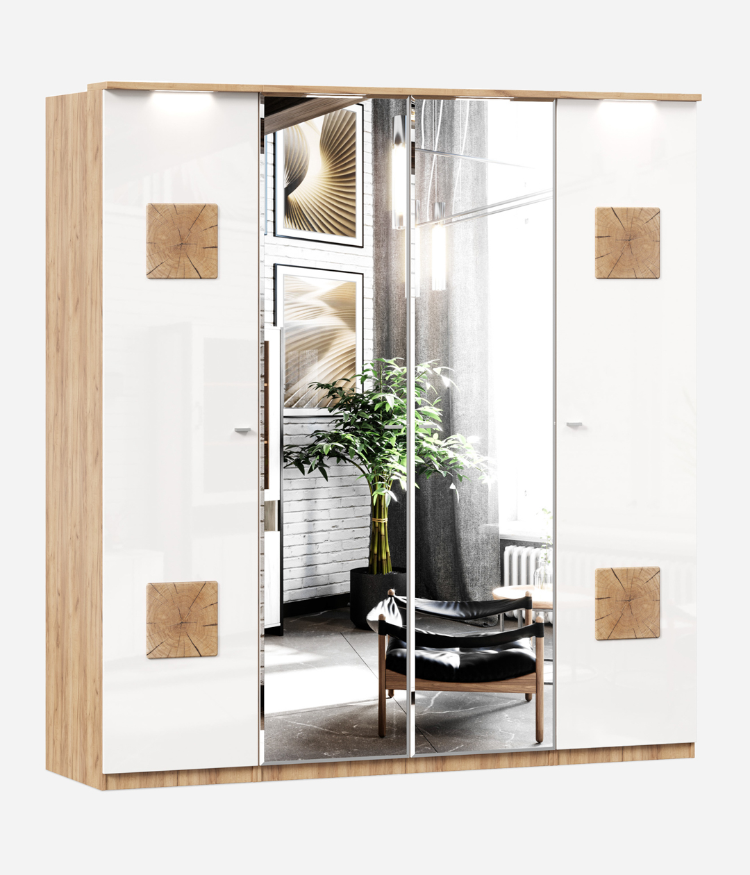 Фиджи четырехстворчатый (Дуб Золотой/Белый)