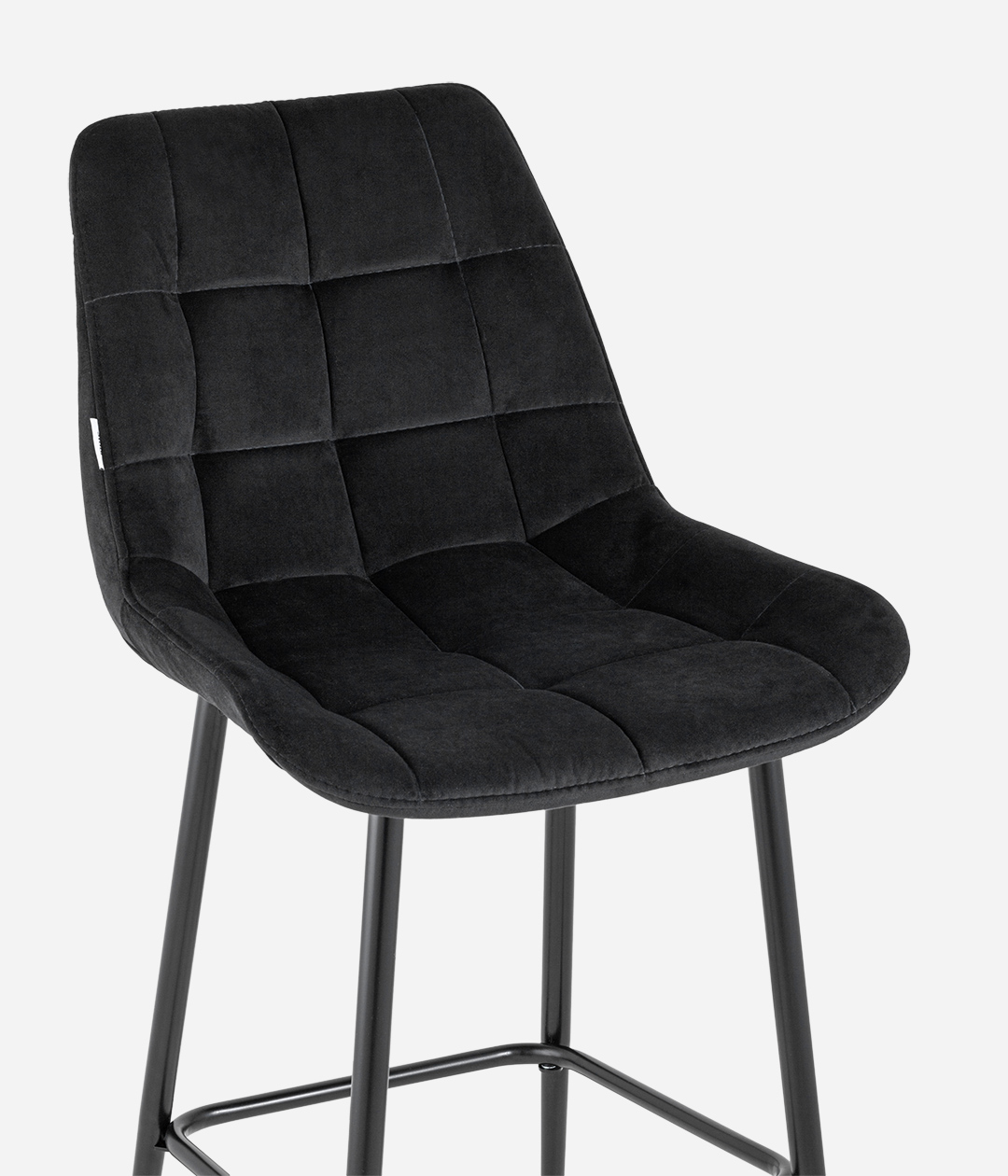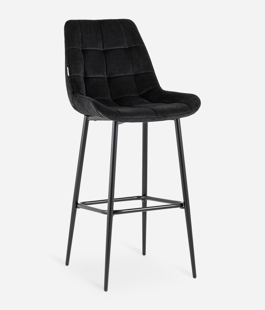 Барный стул в мягкой обивке из велюра без подлокотников. Лаконичный дизайн украсит любой кухонный интерьер.